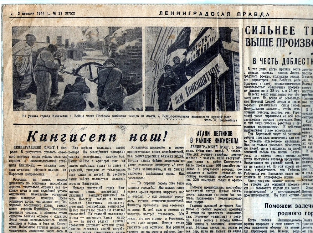 День 1 февраля стал памятной датой всех Кингисеппцев. Бои здесь шли страшные. Кингисеппский укрепрайон Лужского оборонительного рубежа являлся стратегически важным пунктом. Это были ворота в Прибалтику. 29 месяцев город находился в оккупации.