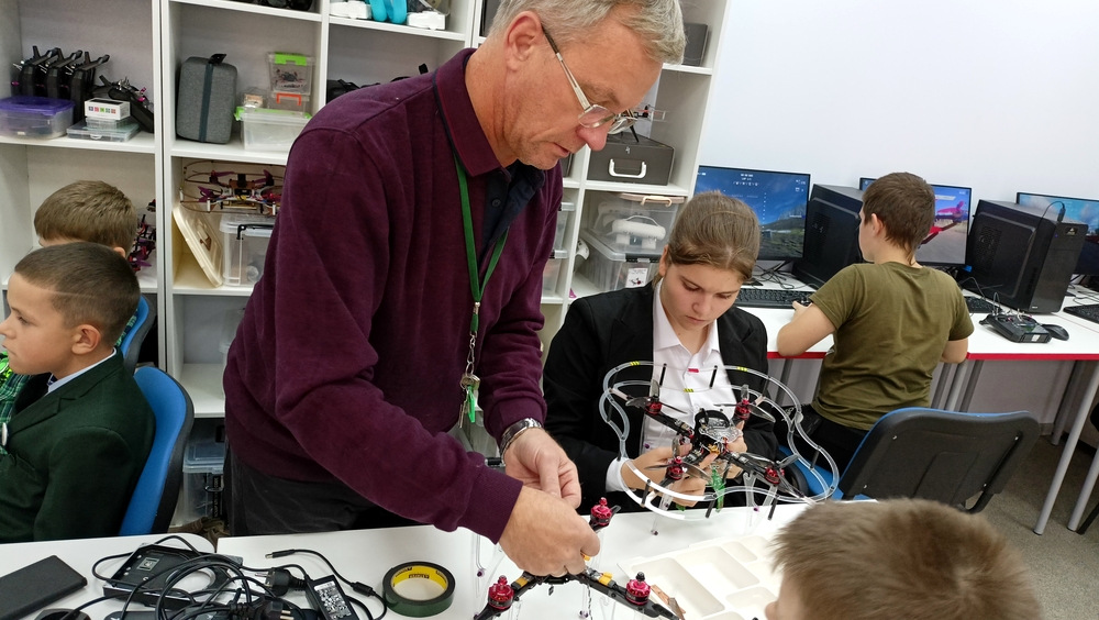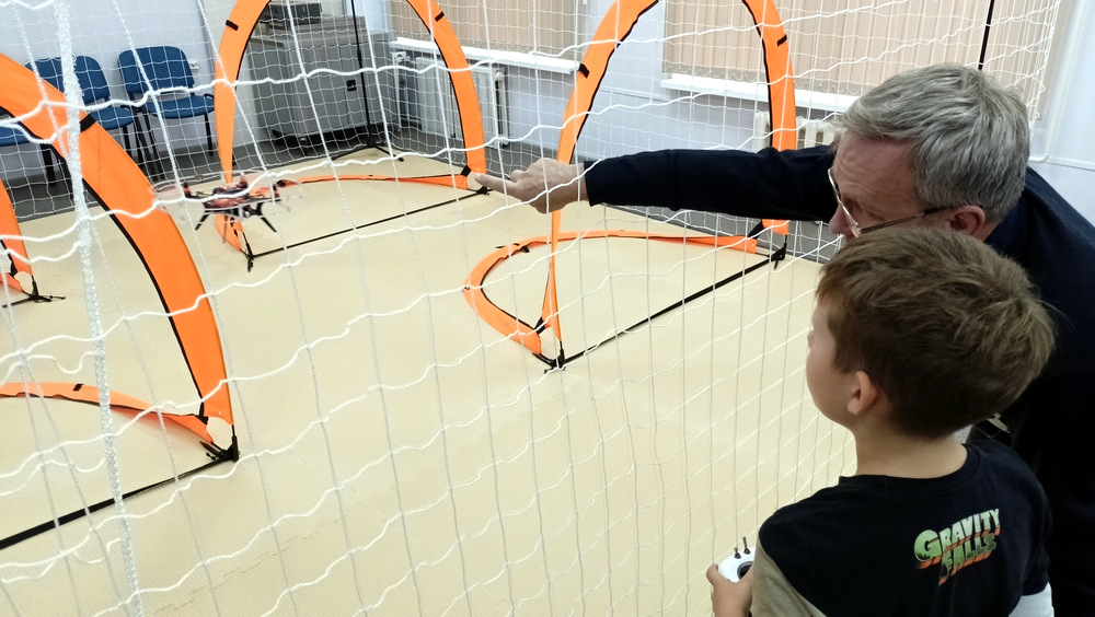 Правда, «старички» тоже за лето подрастеряли свои навыки. И поэтому, приходится наверстывать и полеты в виртуальной реальности, и реальные полеты вокруг препятствий, и сборку квадрокоптеров, и теорию.