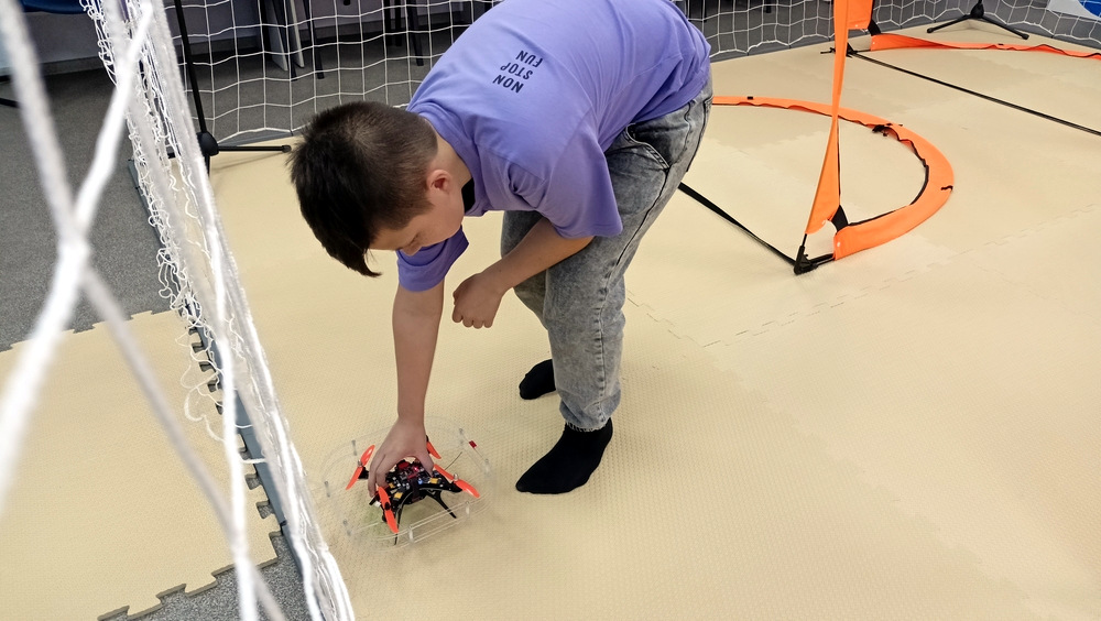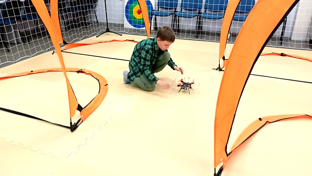 В Аэро-Кинг начинают летать и наши новички. Пока еще не очень уверенно, запутываясь в сетке, или насаживая коптер на стойки ворот. Но, на помощь всегда приходят наставники, среди которых не только педагоги, но ребята, которые занимаются не первый год. И это самое приятное в наших занятиях, когда «бывалые» делятся своим опытом.