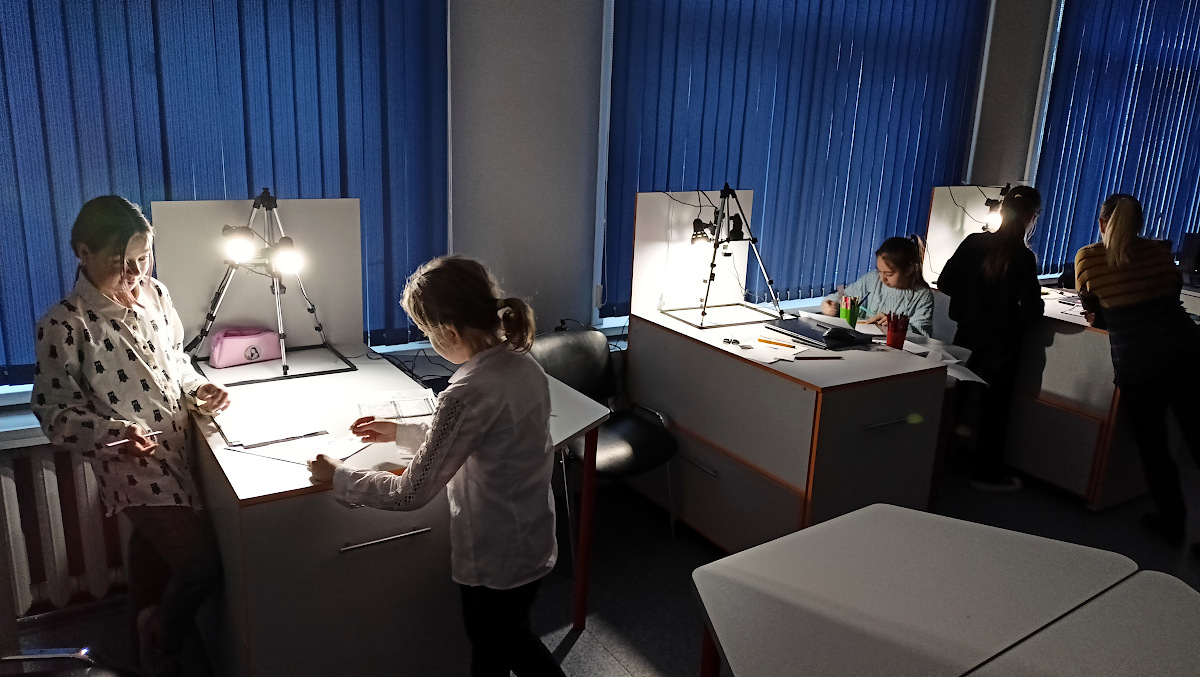 То, что работа в самом разгаре, заметно сразу, как только заглядываешь в кабинет – в притененном помещении яркими пятнами выделяются рабочие места министудий, звучит спокойная музыка и происходит магия.