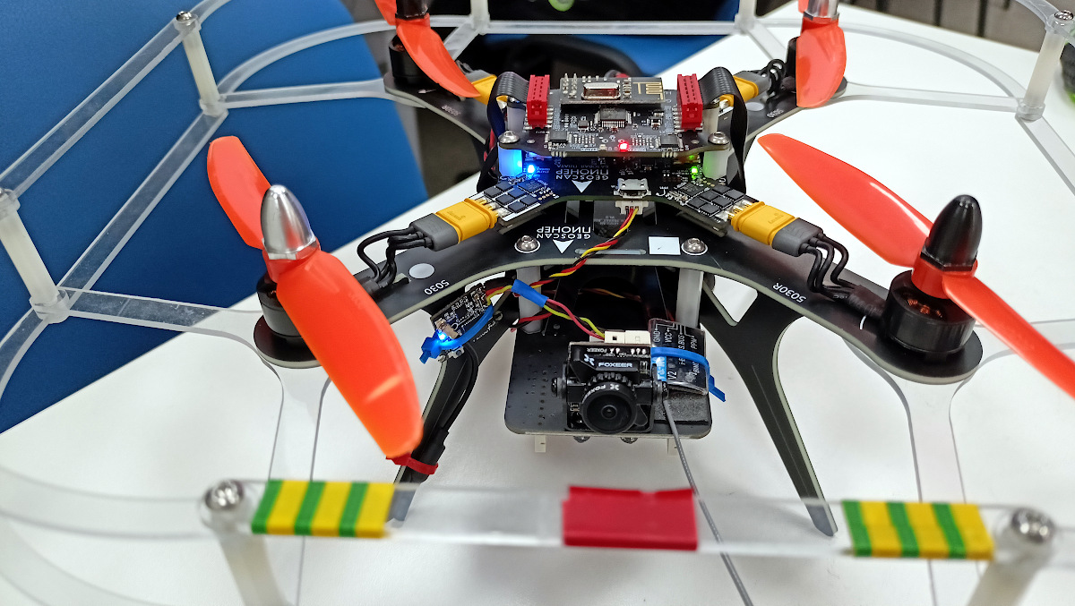 В объединении Аэро-Кинг модернизирован квадрокоптер Пионер для полета «от первого лица». Для этого на коптер установлена видеокамера и подключены FPV-очки.
