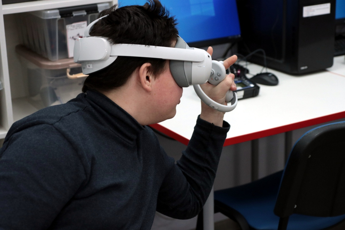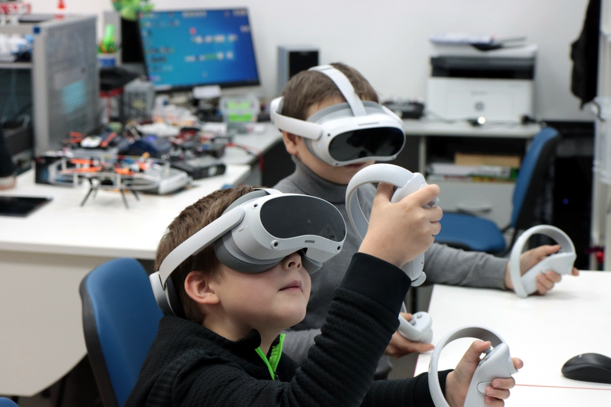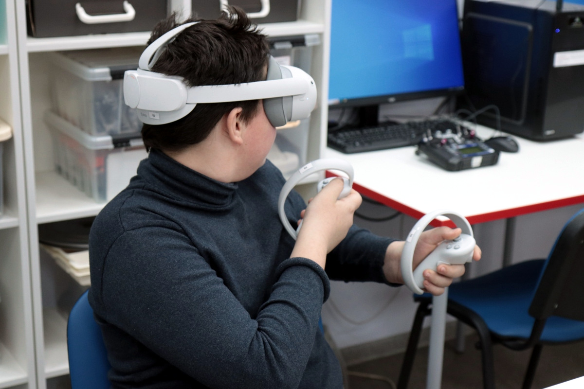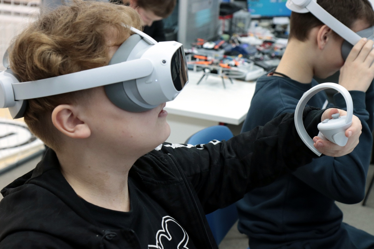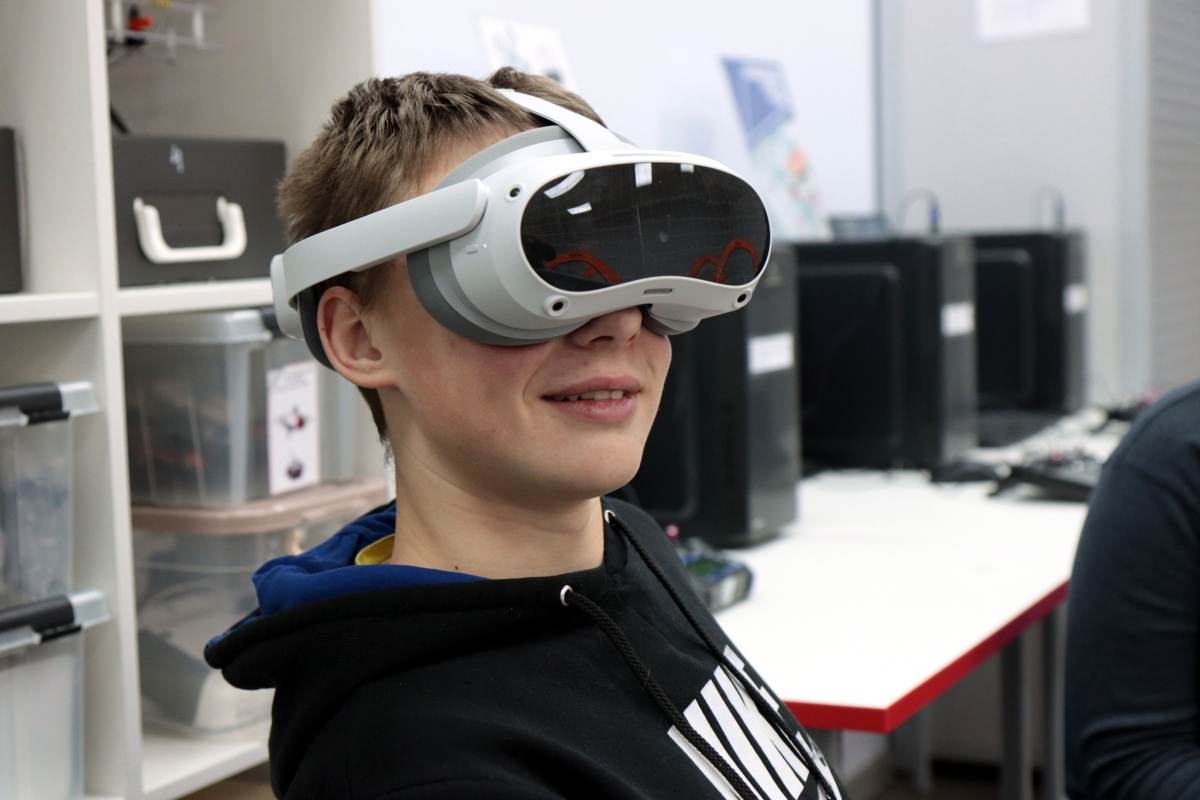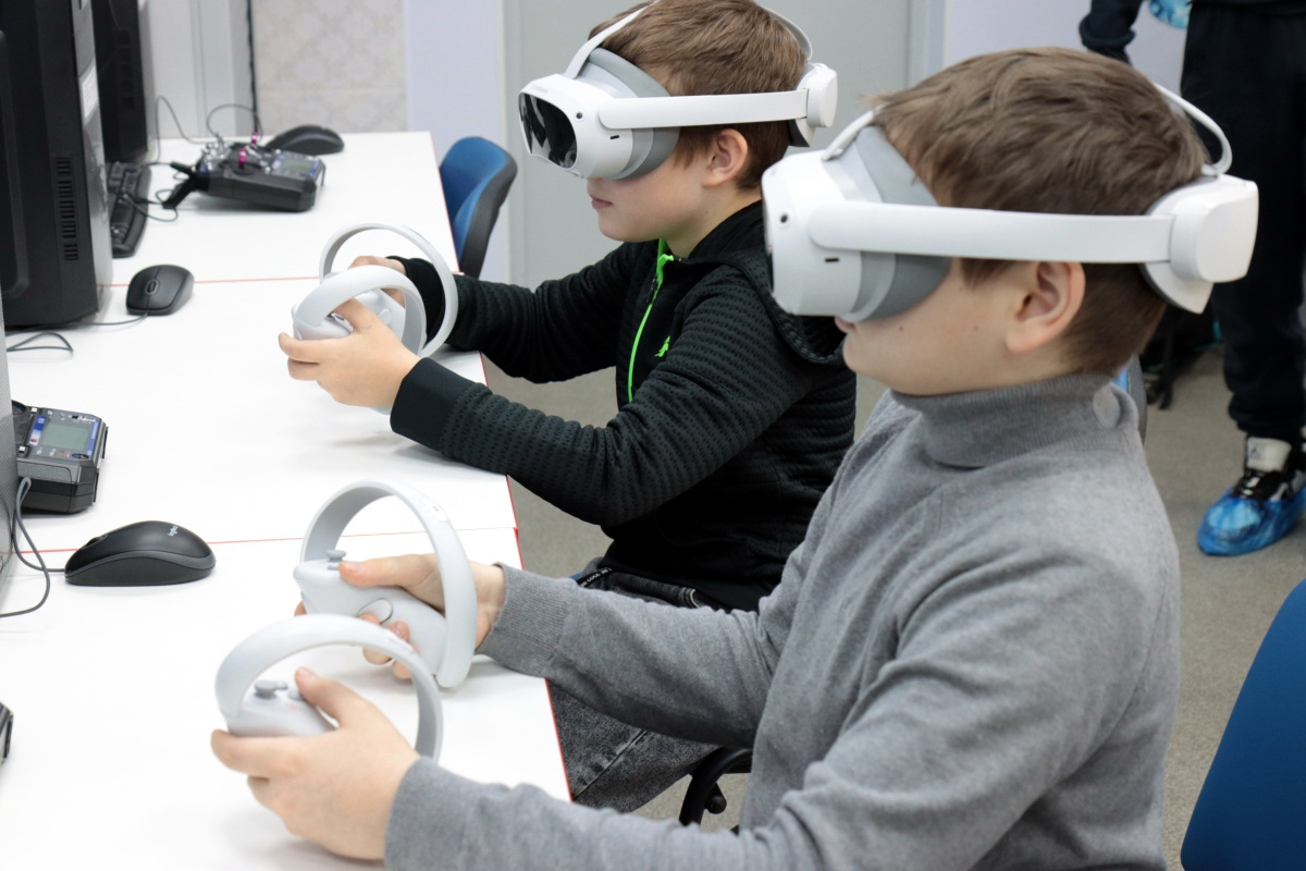 Вторым приятным сюрпризом были очки виртуальной реальности, которые постепенно настраиваются и готовятся к будущим занятиям. Сегодня можно было поучаствовать в сценариях по ОБЖ. В одном случае надо было помочь человеку, провалившемуся под лед. Второй сценарий был посвящен поведению на железных дорогах.