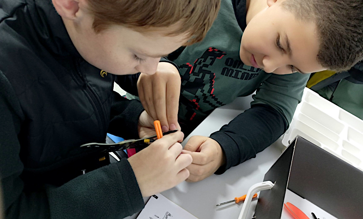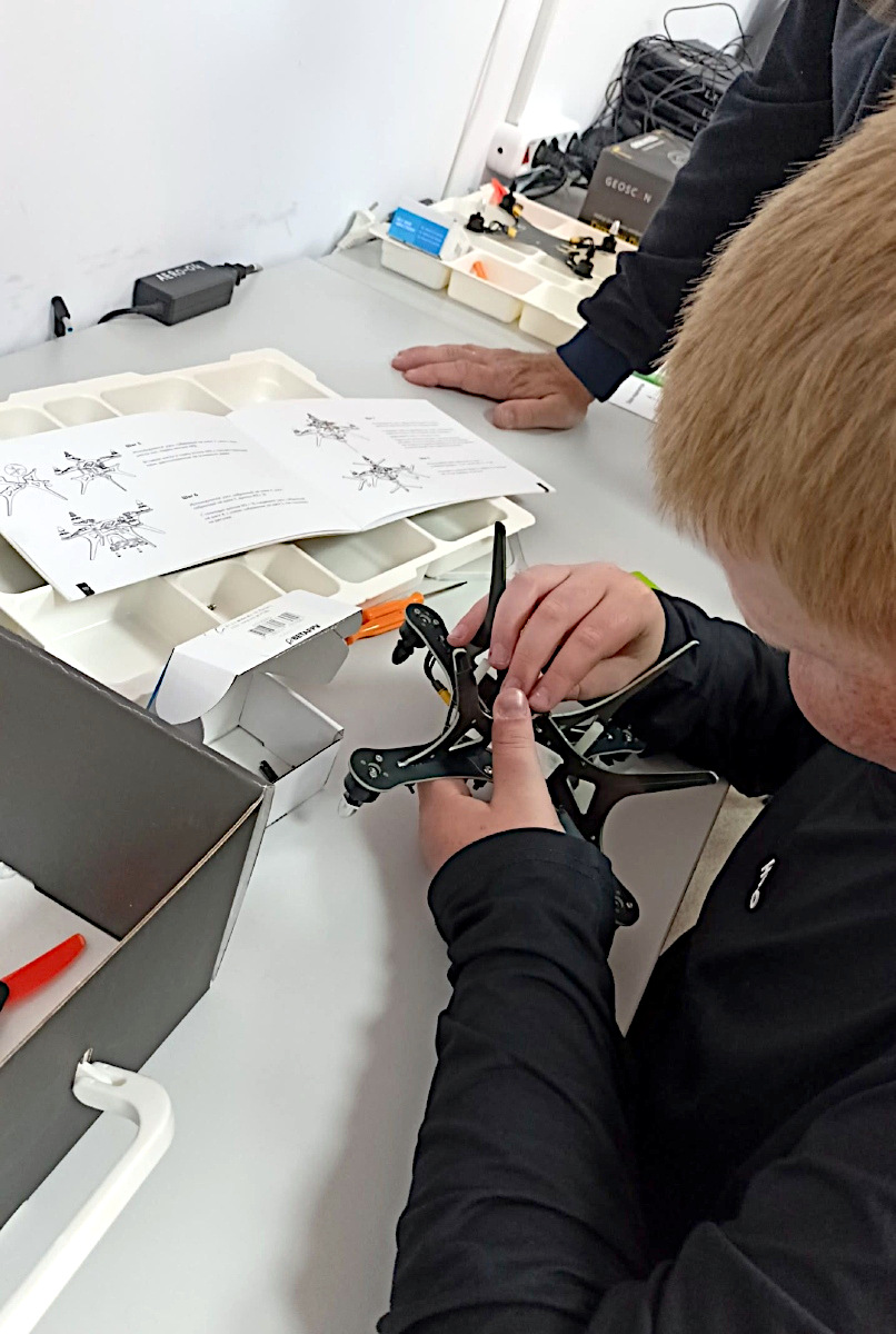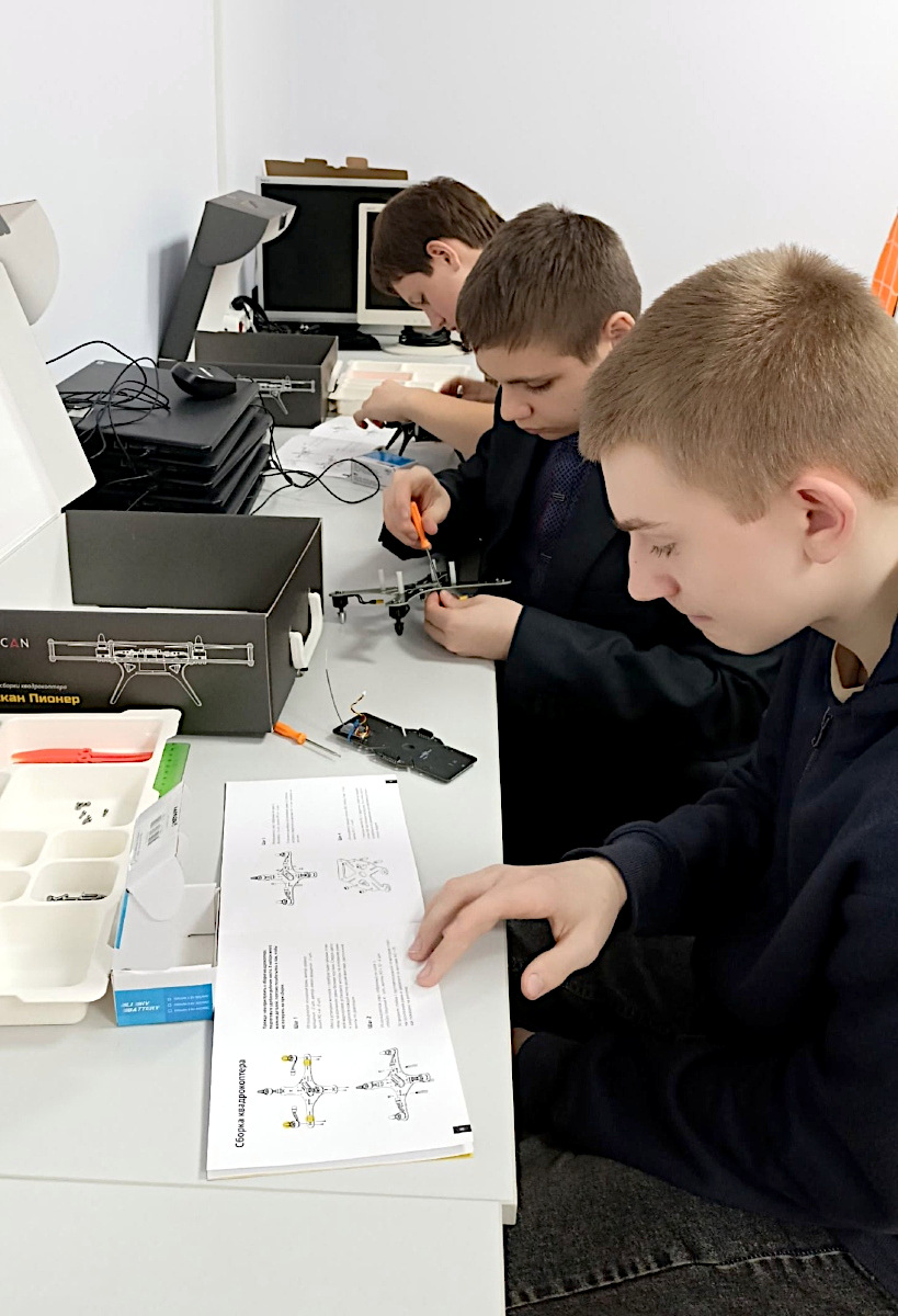 На сборку коптера уходит примерно 2 занятия, если правильно следуешь рекомендациям инструкции. Заодно разбираемся, какие бывают винты (размеры, шаг, маркировка), как называются и за что отвечают составляющие БПЛА устройства. Педагог вмешивается с подсказками только по запросу ученика. Вся ценность этой работы — самостоятельно разобраться в описании и собрать квадрокоптер, который будет способен летать.