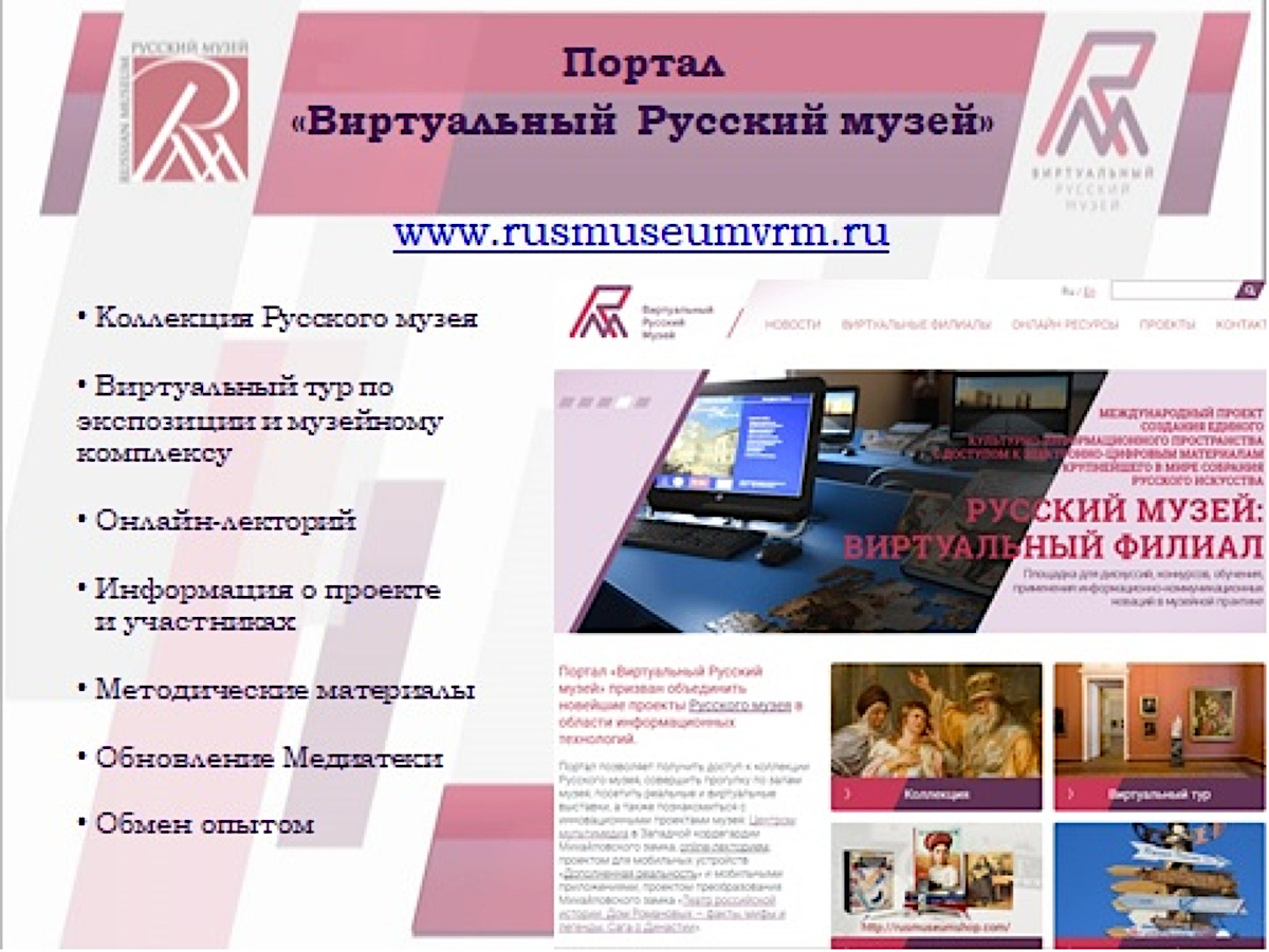 Благодаря компьютерным технологиям, программа Виртуального Русского музея позволяет самостоятельно познакомиться с богатейшим собранием изобразительного искусства, с ценностями русской культуры и историей России.