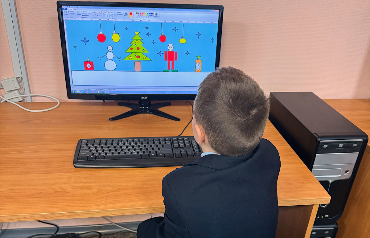 На занятиях «Компьютерный практикум» и «Компьютерная графика и анимация» ребята рисуют новогодние открытки, но не с помощью привычных карандашей и кисточек, а виртуальных.