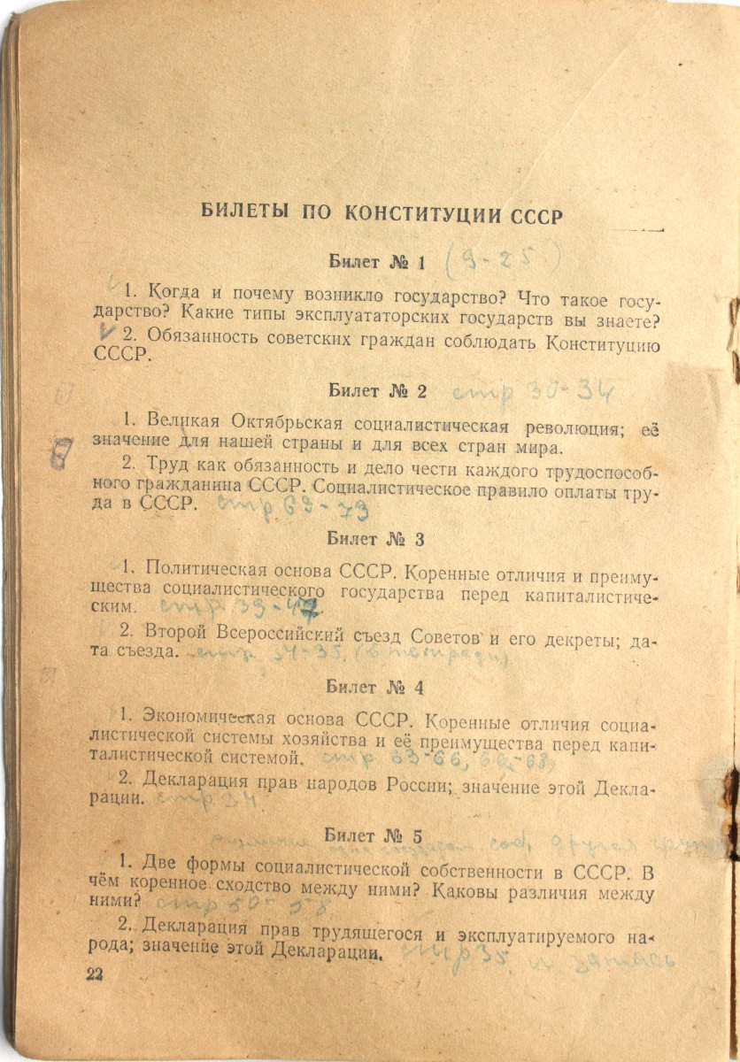 В объяснительной записке к Билетам читаем, что выпускные экзамены для учащихся, оканчивающих семилетнюю школу, установлены постановлением Совета Народных Комиссаров Союза ССР от 21 июня 1944 года.