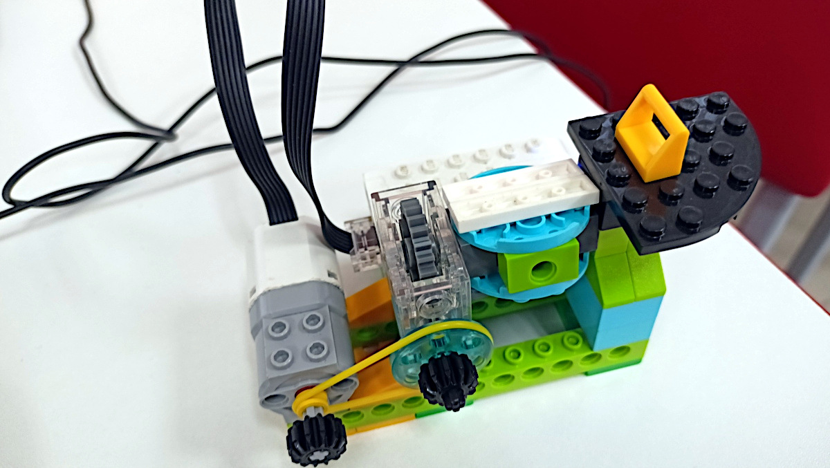 В один из последних дней на кружке робототехники начинающие конструкторы выполняли задание со сдвоенными блоками, основанное на изучении принципа ременной передачи. А именно, должна была получиться болгарка. Получилась. А дальше «Остапов понесло».