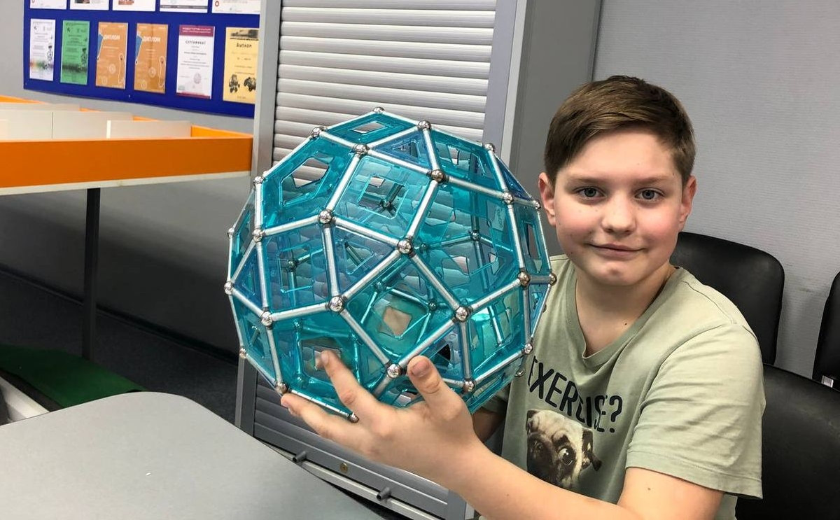 На одном из занятий по конструированию ребятами из группы Авраменко Марины Михайловны был построен икосододекаэдр — полуправильный многогранник (архимедово тело) с 32 гранями, составленный из 20 правильных треугольников и 12 правильных пятиугольников.