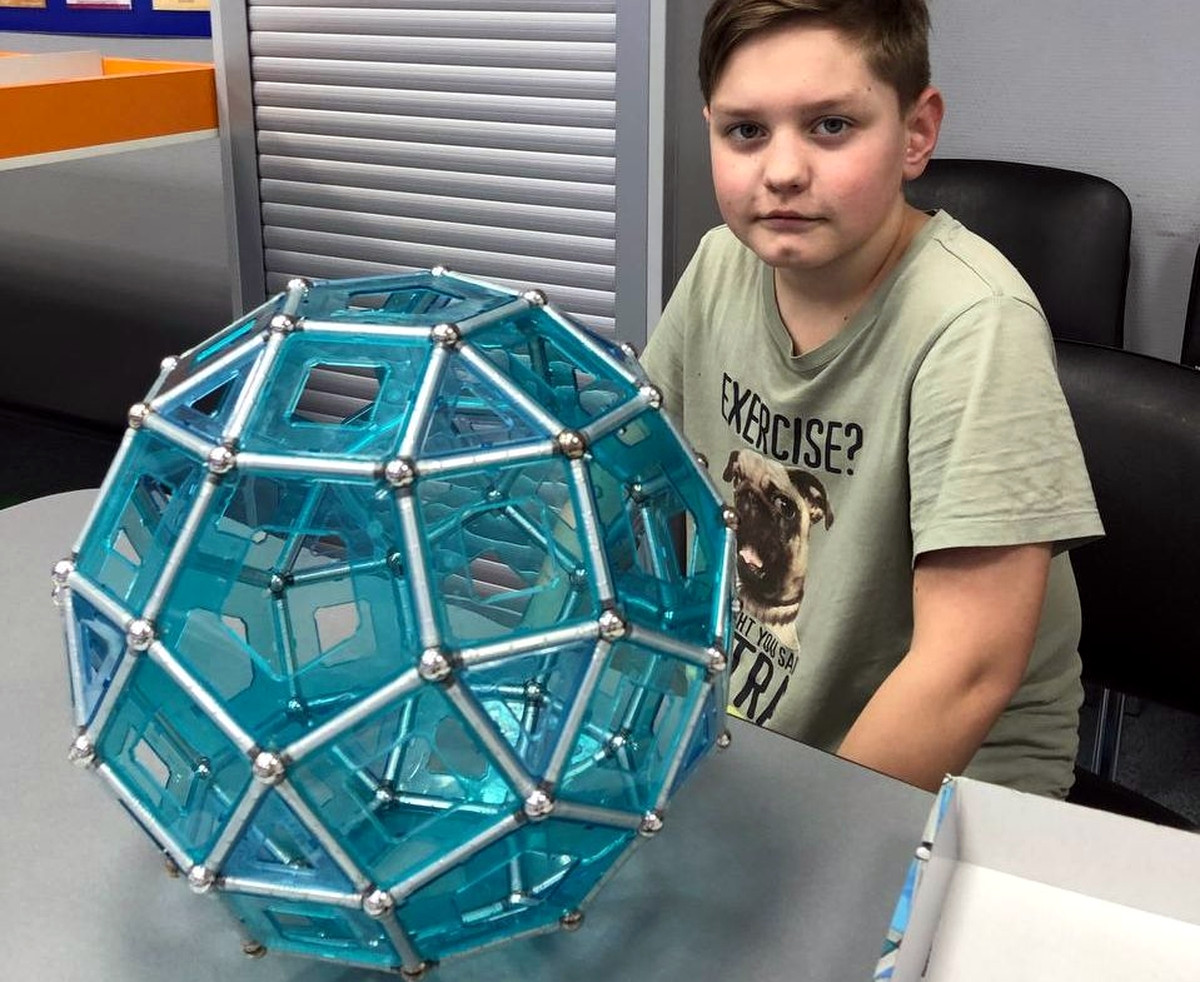 Таким образом, ребята знакомятся с возможными фигурами, построенными на основе Платоновых тел (пять многогранников, которые математики называют правильными — тетраэдр, октаэдр, куб, додекаэдр, икосаэдр). Стороны правильных многогранников являются правильными многоугольниками. А правильные многоугольники это те у которых, в свою очередь, равны все стороны (например: треугольник, квадрат) и равны углы между соседними сторонами.