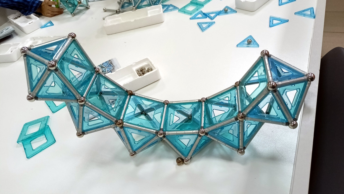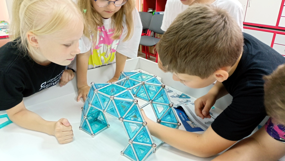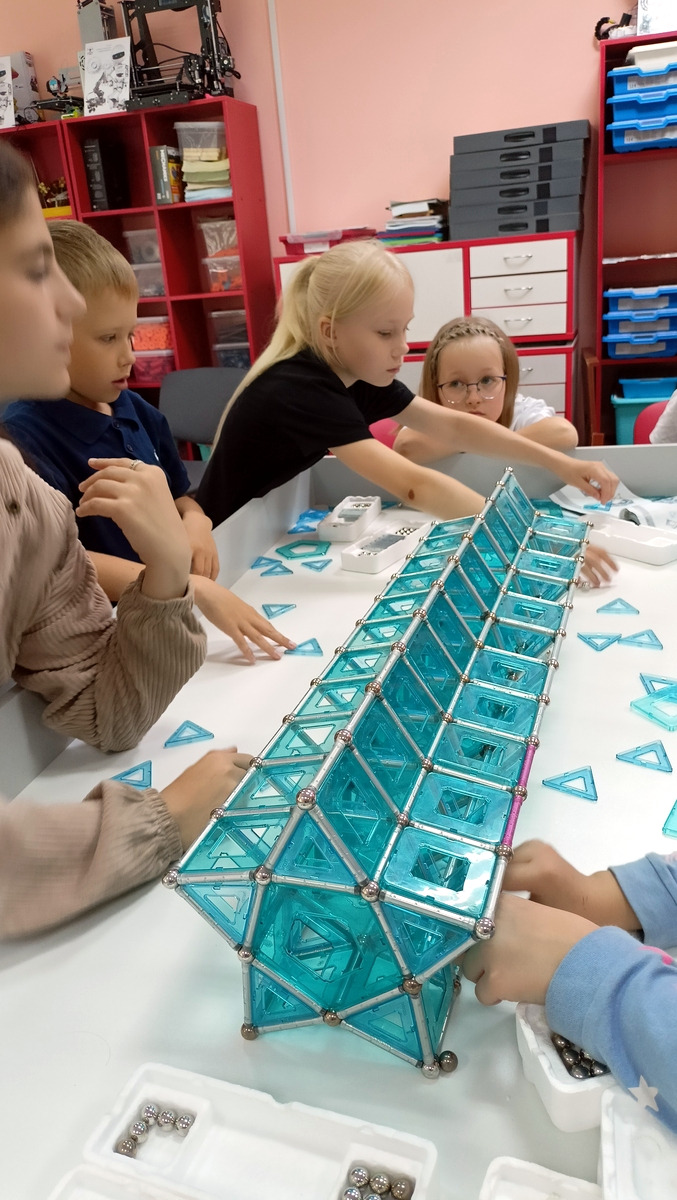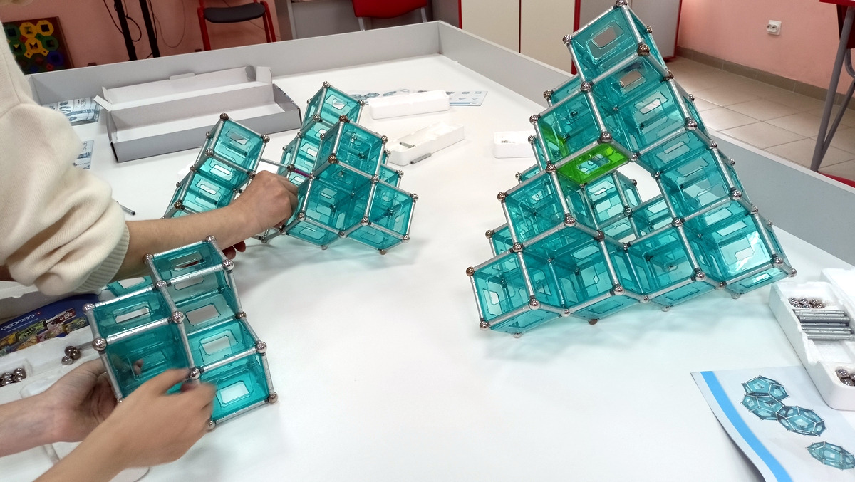 Работа шла в командах, где каждый собирал свои фрагменты, а потом надо было всем объединить свои усилия и построить что-то большое. В итоге получались очень интересные и впечатляющие строения.