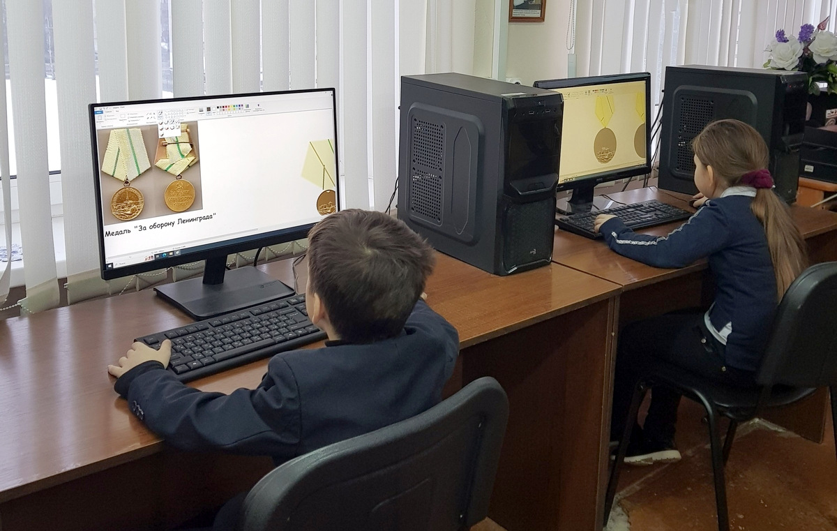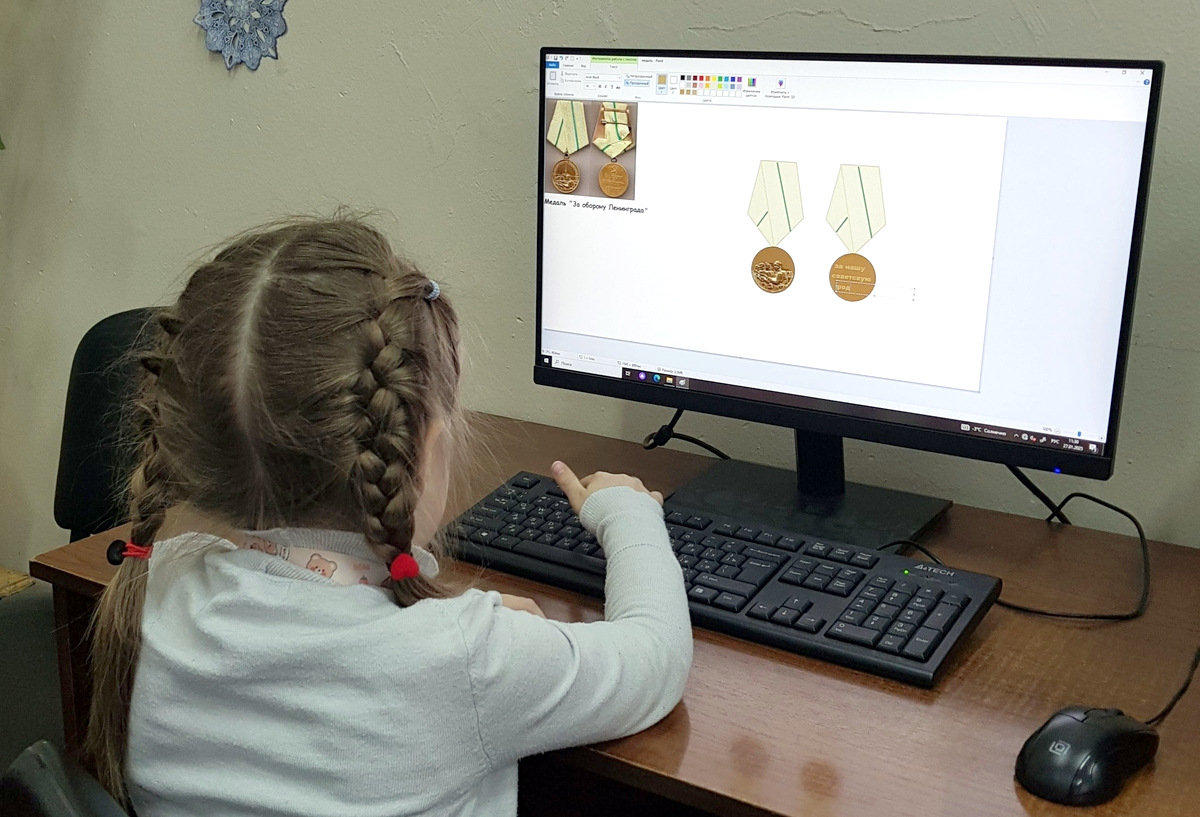Во время занятий ребята ознакомились с произведениями из альбома «Дети блокады» на портале Виртуального Русского музея и посмотрели фрагменты художественного фильма «Жила была девочка». А в практической части занятия изобразили в компьютерной графике модель медали «За оборону Ленинграда».