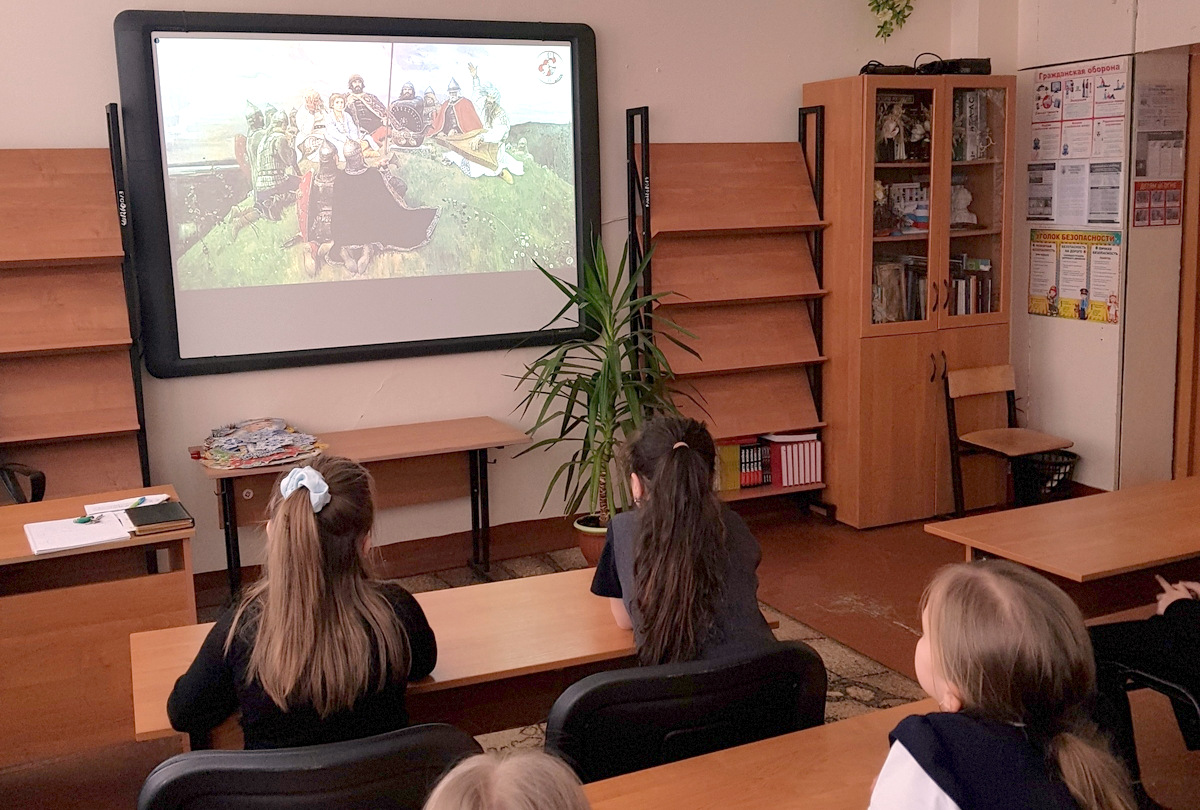 Во время занятий, на примере полотен замечательного художника В.М. Васнецова из коллекции Русского музея ребята узнали о первых защитниках Руси — богатырях. Подробно изучены картины «Баян», «Витязь на распутье» и известная картина, хранящееся в Москве в Третьяковской галерее — «Богатыри».