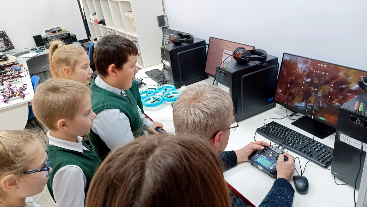 Гостям показали учебные локации ЦИТ: кабинет клуба робототехники «Леонардо» и в полетной зоне объединения «Аэро-Кинг». Рассказали о занятиях техническим творчеством, поговорили о возможностях беспилотников, дали чуть-чуть попробовать себя в роли оператора БПЛА.