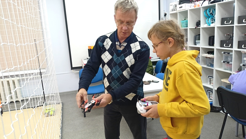 Правда, «старички» тоже за лето подрастеряли свои навыки. И поэтому, приходится наверстывать и полеты в виртуальной реальности, и реальные полеты вокруг препятствий, и сборку квадрокоптеров, и теорию.