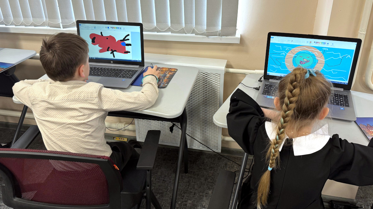 36  четвероклассника прошли урок цифры «Кибербезопасность будущего». Первоклассники познакомились с угрозами из видео «Безопасность детей в интернете. Правила поведения.», и попробовали изобразить компьютерный вирус.