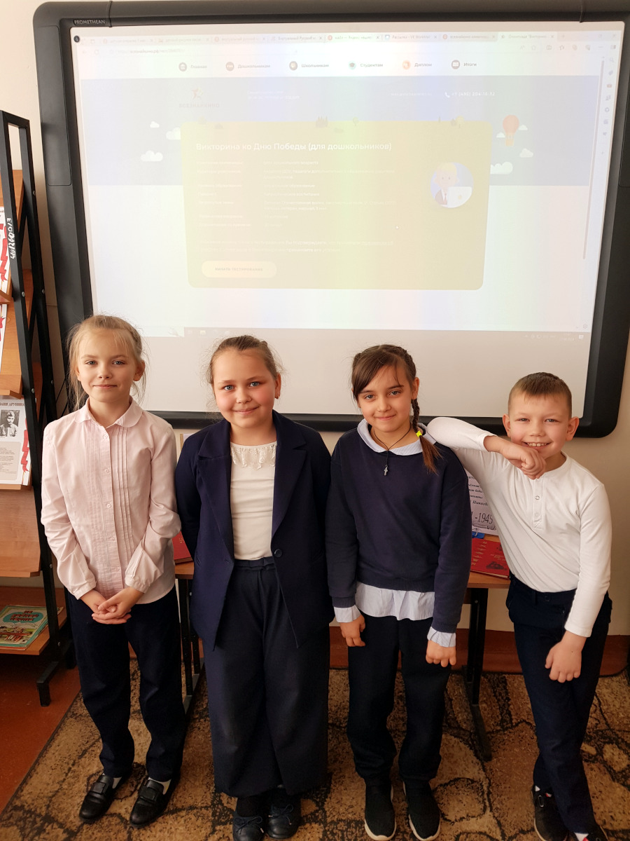 Кроме выполнения графических работ, младшие группы поучаствовали в онлайн-олимпиаде «Всезнайкино» в номинации «Викторина ко Дню Победы». А ученики одной из групп 4а класса КСОШ № 2 составили список бессмертного полка из фамилий своих прадедов, сражавшихся на фронте в годы Великой Отечественной Войны.