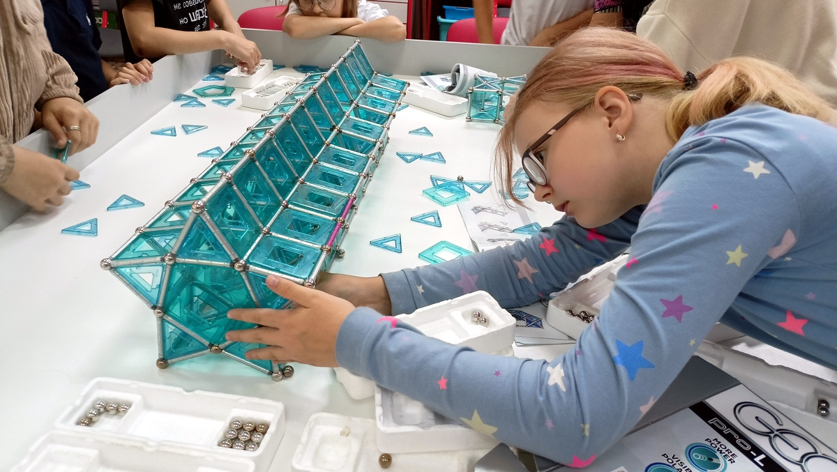 Работа шла в командах, где каждый собирал свои фрагменты, а потом надо было всем объединить свои усилия и построить что-то большое. В итоге получались очень интересные и впечатляющие строения.