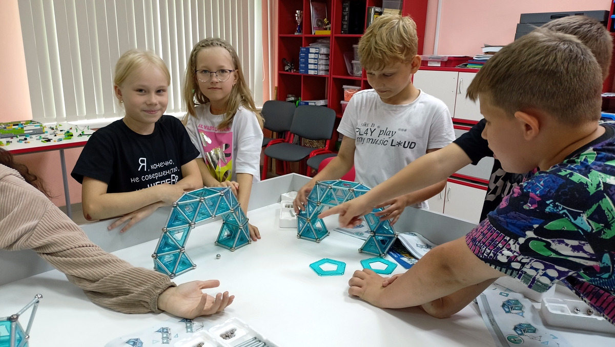 Работа шла в командах, где каждый собирал свои фрагменты, а потом надо было всем объединить свои усилия и построить что-то большое. В итоге получались очень интересные и впечатляющие строения.