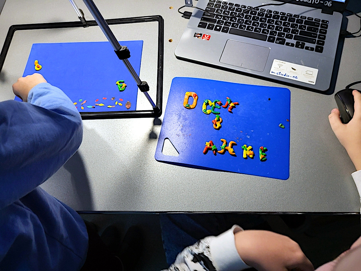 Мультфильм создаётся покадрово, с использованием техники stopmotion – ребята перемещают персонажей, делаю кадр, затем перемещают персонажа снова и делают следующий кадр.