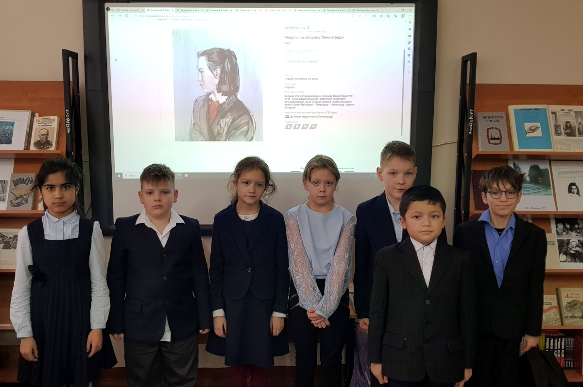 Во время занятий были использованы цифровые изображения из собрания Русского музея. Ученики узнали о художниках живших и творивших в блокадном городе и познакомились с их работами.