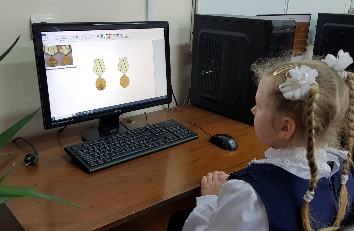 В практической части занятий ребята воспроизводили в графическом редакторе медаль «За оборону Ленинграда».