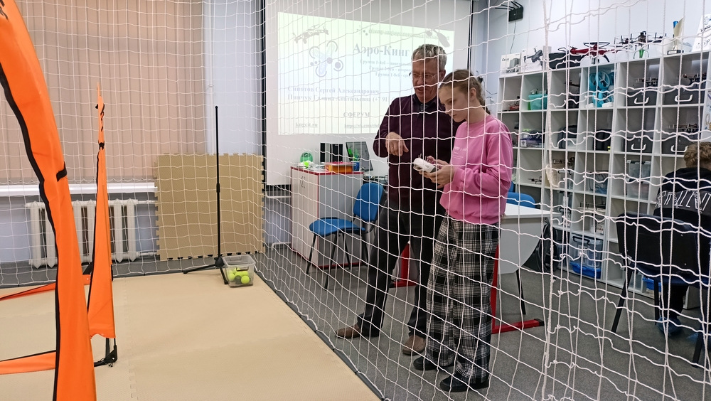 В Аэро-Кинг начинают летать и наши новички. Пока еще не очень уверенно, запутываясь в сетке, или насаживая коптер на стойки ворот. Но, на помощь всегда приходят наставники, среди которых не только педагоги, но ребята, которые занимаются не первый год. И это самое приятное в наших занятиях, когда «бывалые» делятся своим опытом.