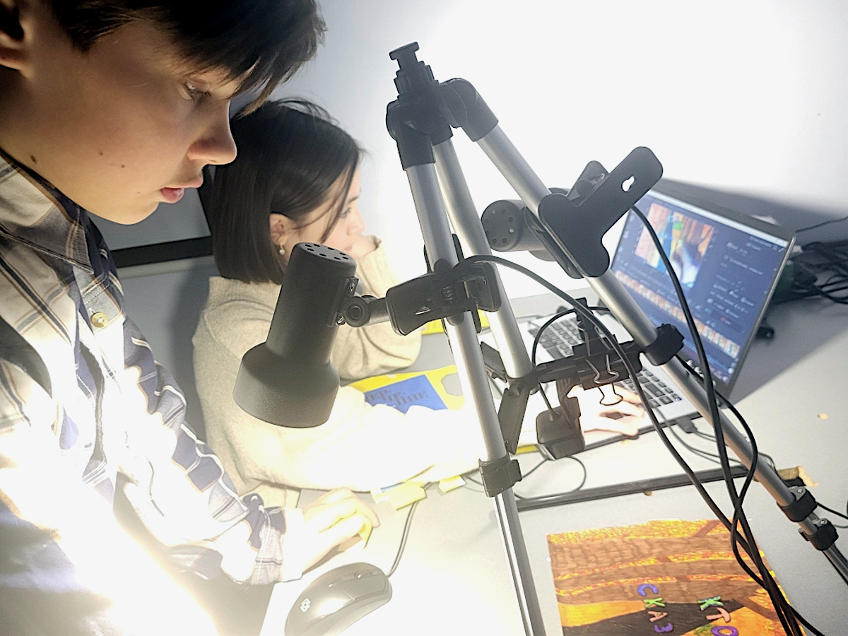 Мультфильм создаётся покадрово, с использованием техники stopmotion – ребята перемещают персонажей, делаю кадр, затем перемещают персонажа снова и делают следующий кадр.