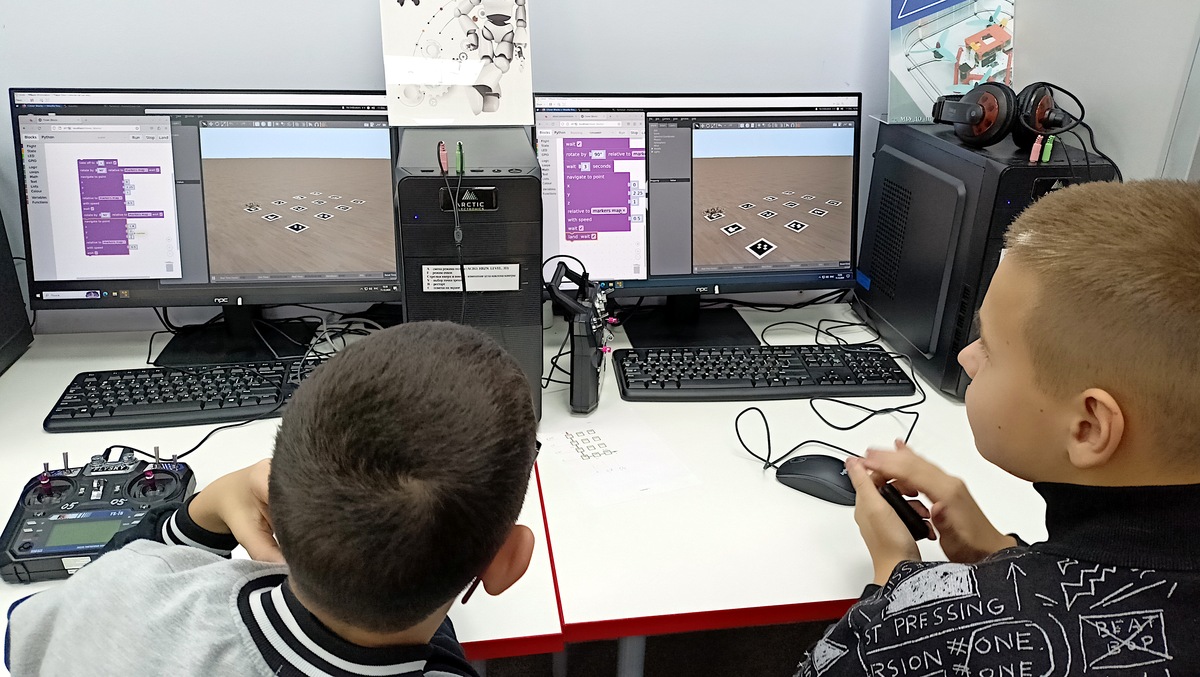 В объединении Аэро-Кинг в декабре начались занятия на виртуальной машине, где можно экспериментировать с программой полета коптера без угрозы его потери или порчи имущества. Когда будет ясно, что программа работоспособна, и коптер летит правильно и безопасно, программу можно будет занести в устройство и проверить его полет в реальной полетной зоне.