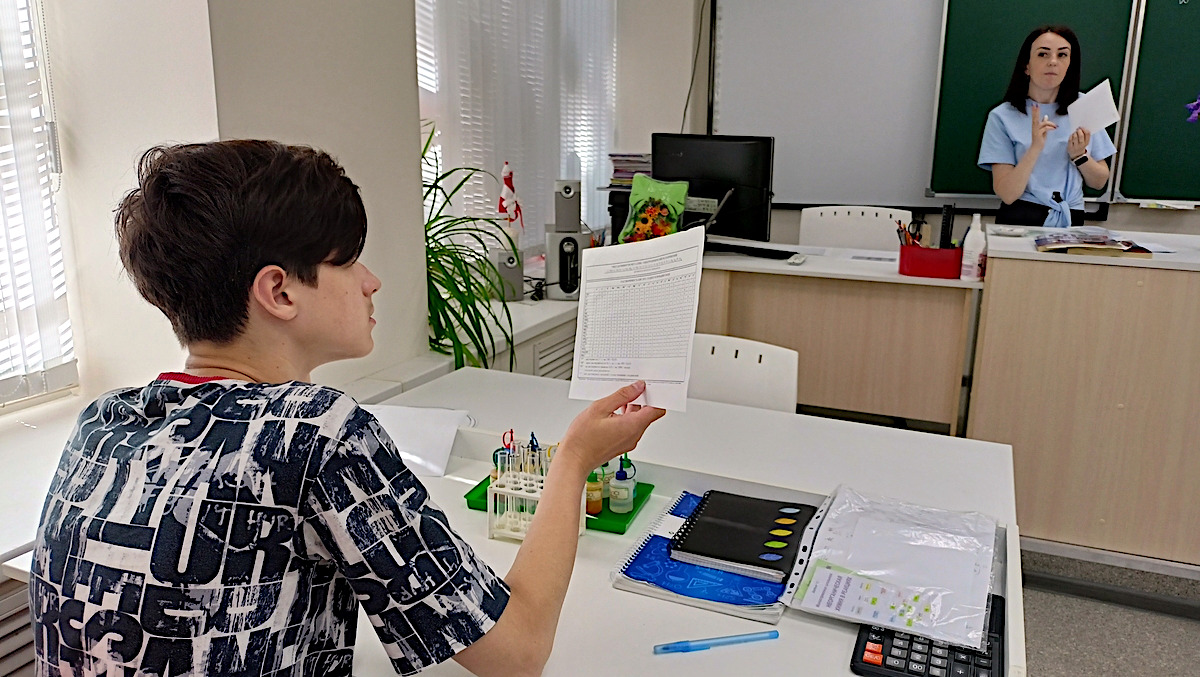Биологи, не поднимая головы, боролись с заданиями входного тестирования. Впереди их ждало обсуждение ответов. На основе полученных результатов педагогом Анастасией Владимировной Колодиной в дальнейшем будет выстраиваться линия подготовки по предмету.