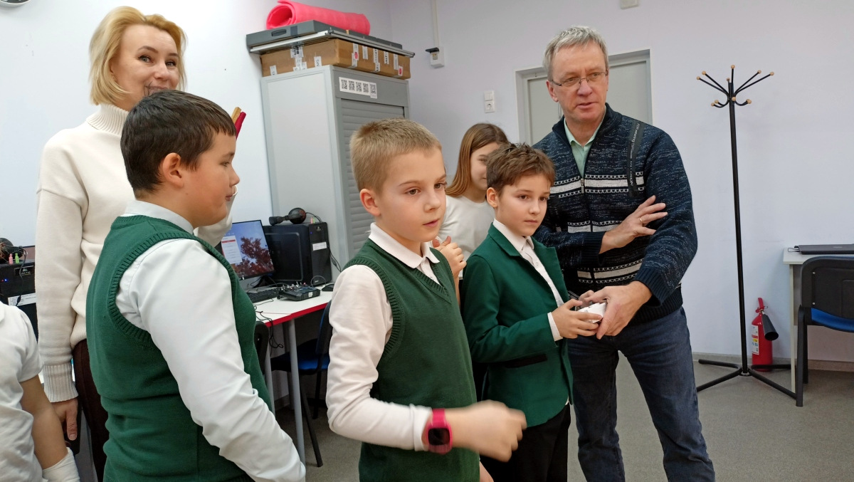 Гостям показали учебные локации ЦИТ: кабинет клуба робототехники «Леонардо» и в полетной зоне объединения «Аэро-Кинг». Рассказали о занятиях техническим творчеством, поговорили о возможностях беспилотников, дали чуть-чуть попробовать себя в роли оператора БПЛА.