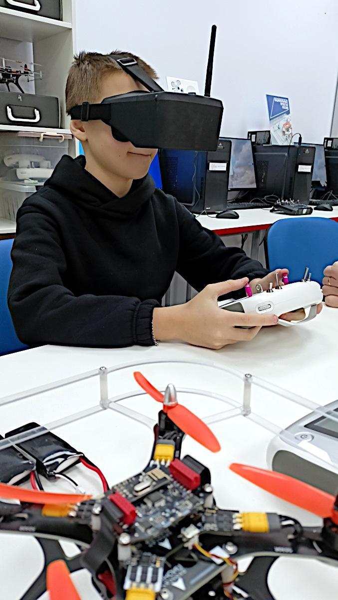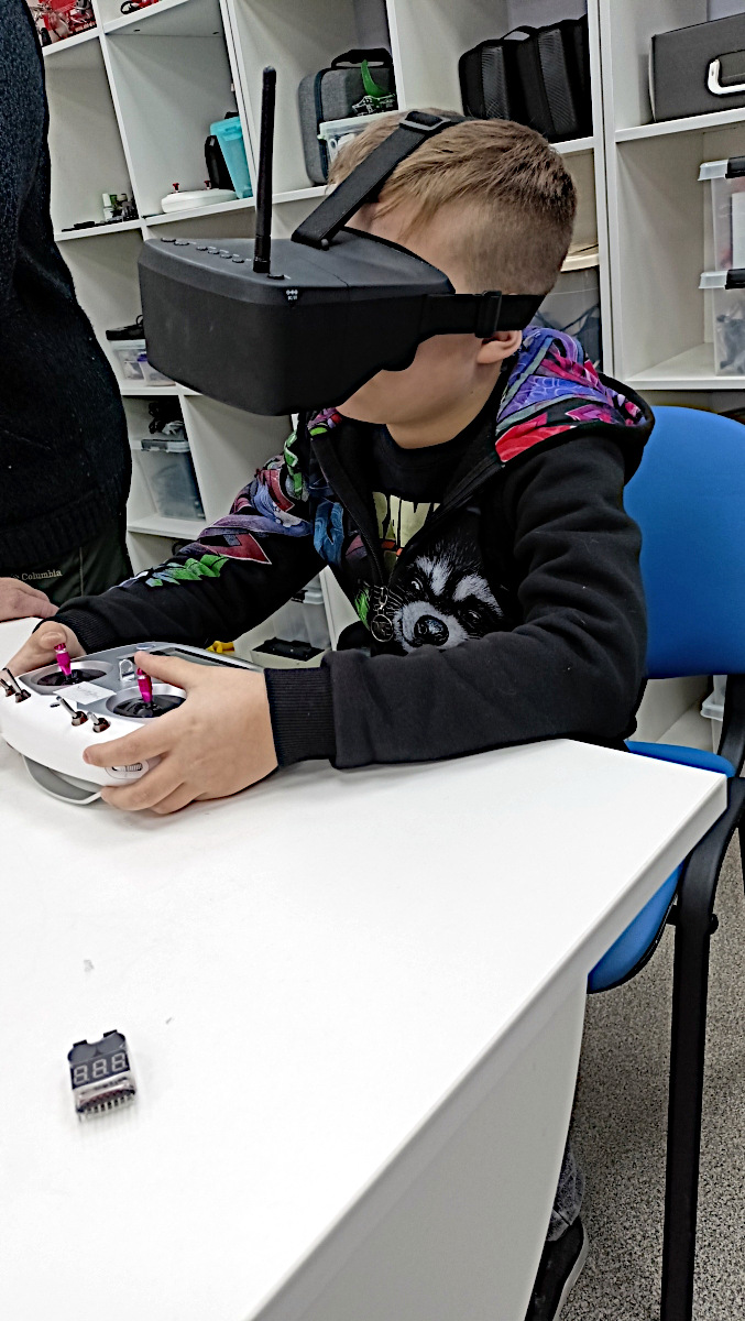 С началом II полугодия в Аэро-Кинг начались тренировки FPV-полетов. Получается не все и не сразу. Учимся ощущать габариты коптера, оценивать расстояния до препятствий, уровень подъема, учитывать инертность в движении. А еще, учимся смотреть глазами коптера.