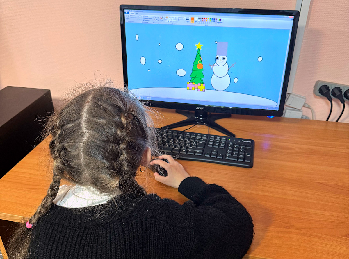 На занятиях «Компьютерный практикум» и «Компьютерная графика и анимация» ребята рисуют новогодние открытки, но не с помощью привычных карандашей и кисточек, а виртуальных.