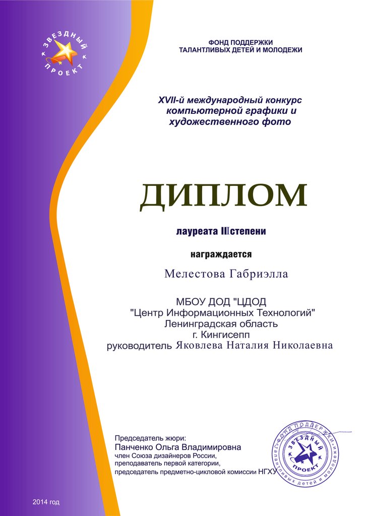 Поздравляем воспитанников ЦИТ, учащихся начальной школы, с ставших призерами XVII-го Международного конкурса компьютерной графики и художественного фото, который ежегодно проводится под эгидой Фонда поддержки талантливых детей и молодежи!
