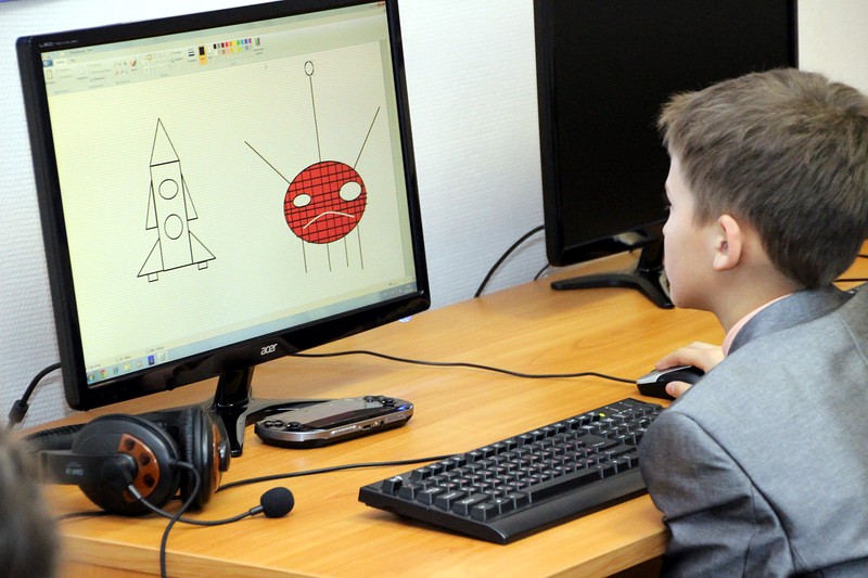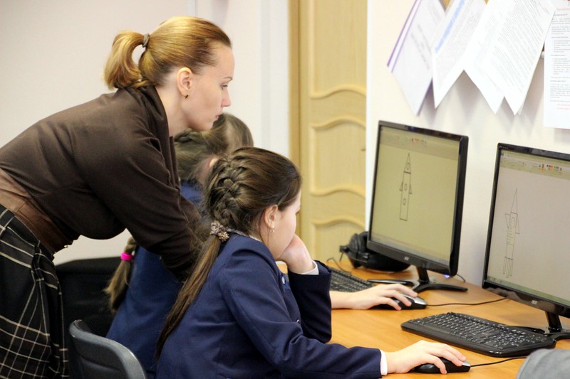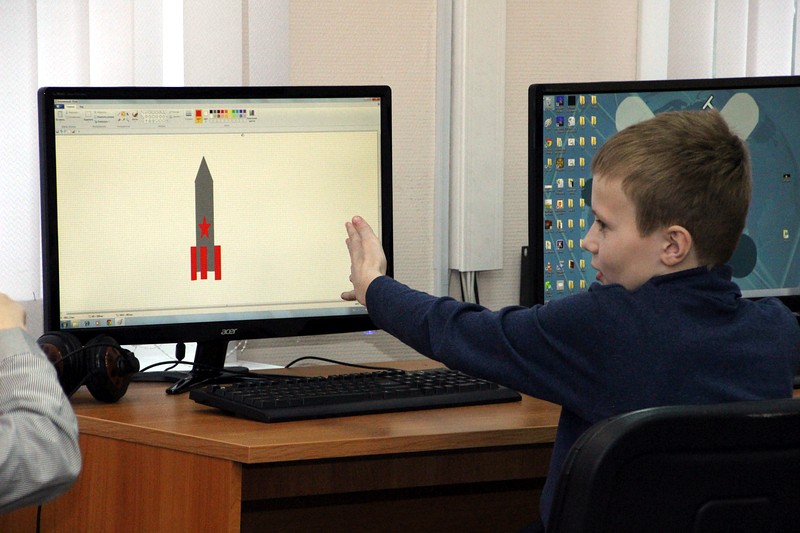 Сегодня же ребята знакомились с новыми элементами графики, определялись с конструкцией ракет и космических кораблей, пробуя себя в нескольких ролях — художника, программиста, инженера, конструктора.