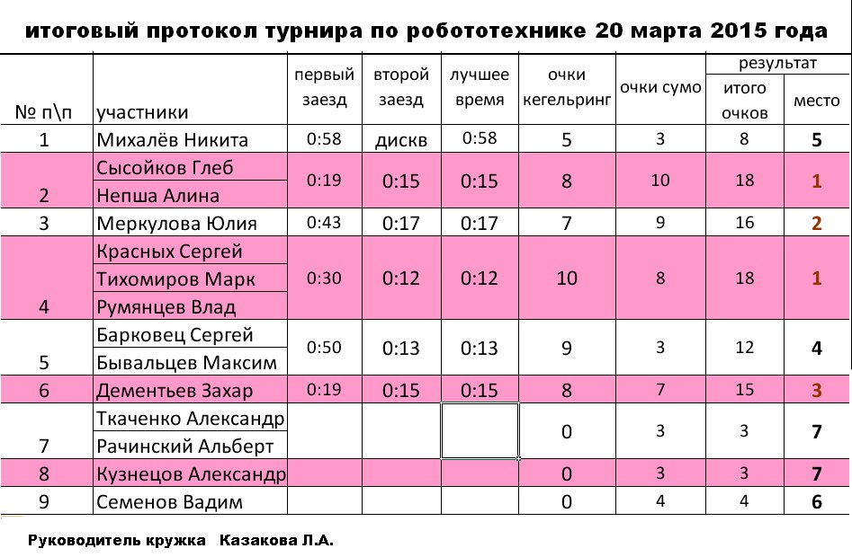 - III место у самого юного конструктора Дементьева Захара, робот которого соревновался «самостоятельно» из-за проблем с приездом Захара из Ивангорода.
