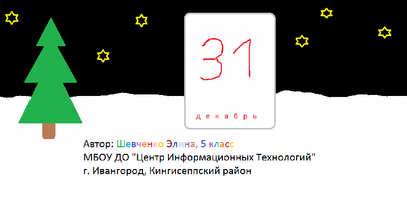 - 1 место — Нефедов Владислав (педагог Казакова Л.А.) работа: новогодняя мини-игра "Наряди елку" на языке программирования Scratch