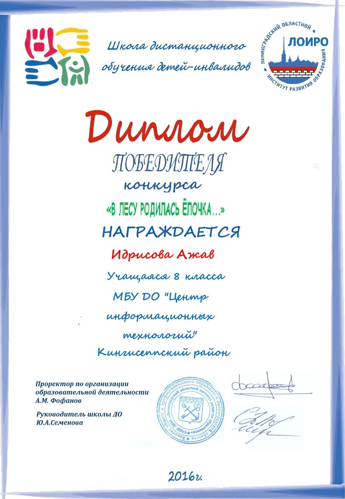Школа дистанционного обучения детей-инвалидов Ленинградской области подвела итоги новогоднего конкурса «В лесу родилась елочка...».