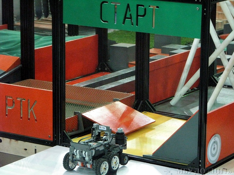 Еще одна команда (Бережков Андрей и Сабанцев Кирилл) принимала участие в «Кубке РТК». Отбор на этот вид был еще серьезней, чем в творческой категории. Всего в финал было допущено 40 команд, а заявок было подано 70. В финальной части роботам предстояло преодолеть сложный полигон с препятствиями. Наша команда не смогла войти в число победителей, но ребята получили бесценный опыт и уже готовы конструировать нового робота-вездехода.