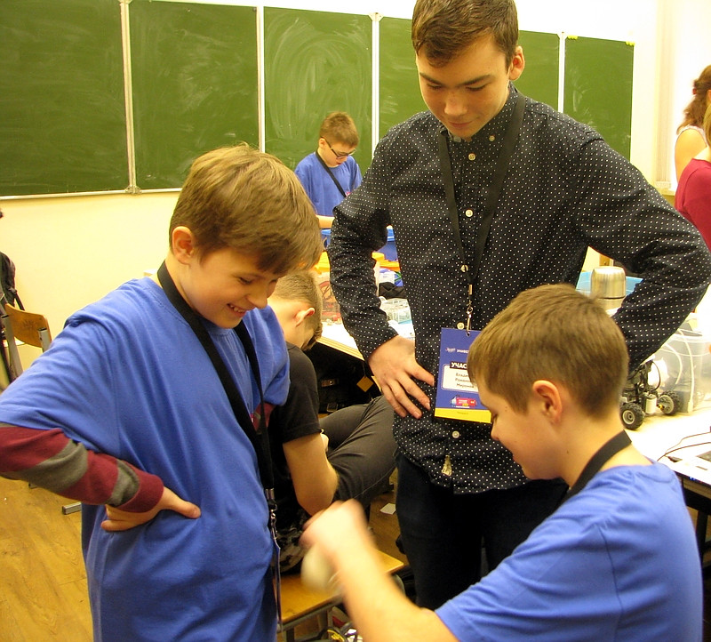 Вместе с нами в финал категории «Царь горы» вышла команда из г. Кириши «Е2Е4». С ребятами и их педагогом мы познакомились на III Окружном форуме по робототехнике «Старт в будущее» и воспитанники клуба «Леонардо» болели за команду из Киришей. Так же как и за команду «Шанс» из г. Сланцы, к сожалению их робот не смог пройти в финал, выбыв из состязаний на предпоследнем этапе.
