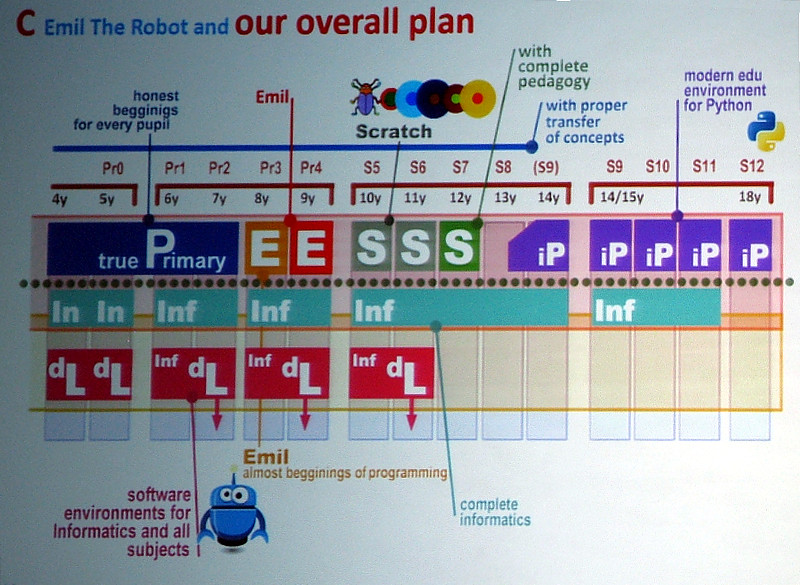 Иван Калаш, глава отдела преподавания информатики в Университете Каменского (Братислава, Словацкая республика), представил доклад «Программирование в начальной школе: исключительная возможность …и исключительная задача». Он рассказал о своем опыте преподавания программирования в младшей школе в Словакии и Великобритании, о задачах, которые стоят перед педагогом. Весьма интересной оказалась презентация новой среды обучения EMIL, которая в настоящий момент проходит апробацию в Словакии. Концепция EMIL выходит за рамки школьного курса и может с большим успехом применяться и в дополнительном образовании.