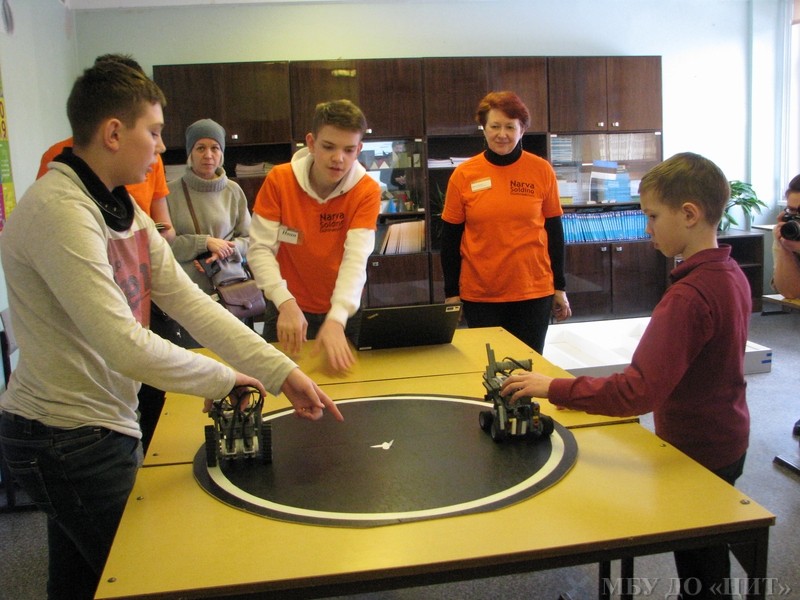 28 февраля воспитанники клуба «Леонардо» из Ивангорода отправились в гости к друзьям из Нарвской Солдинской гимназии (Narva Soldino Gumnaasjum), которые пригласили нас на соревнования по робототехнике.  Соревнования проводились по трем категориям: «Лабиринт», «Интеллектуальное сумо» и «Кегельринг-макро».