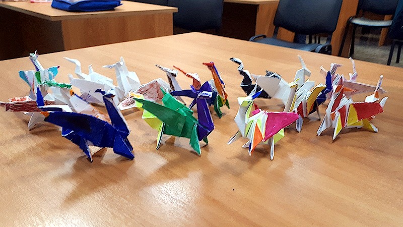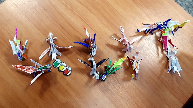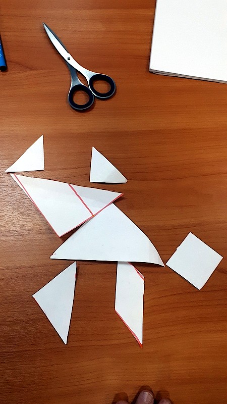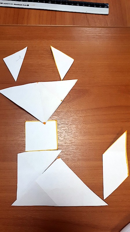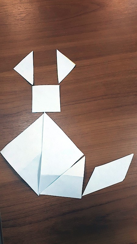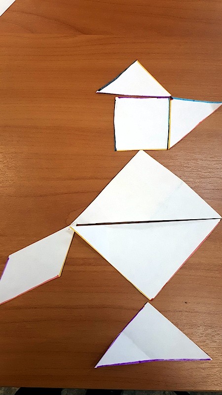 Танграм дети сконструировали сами путем сложения бумаги специальным образом. Использование оригами, учит детей работать с бумагой.
