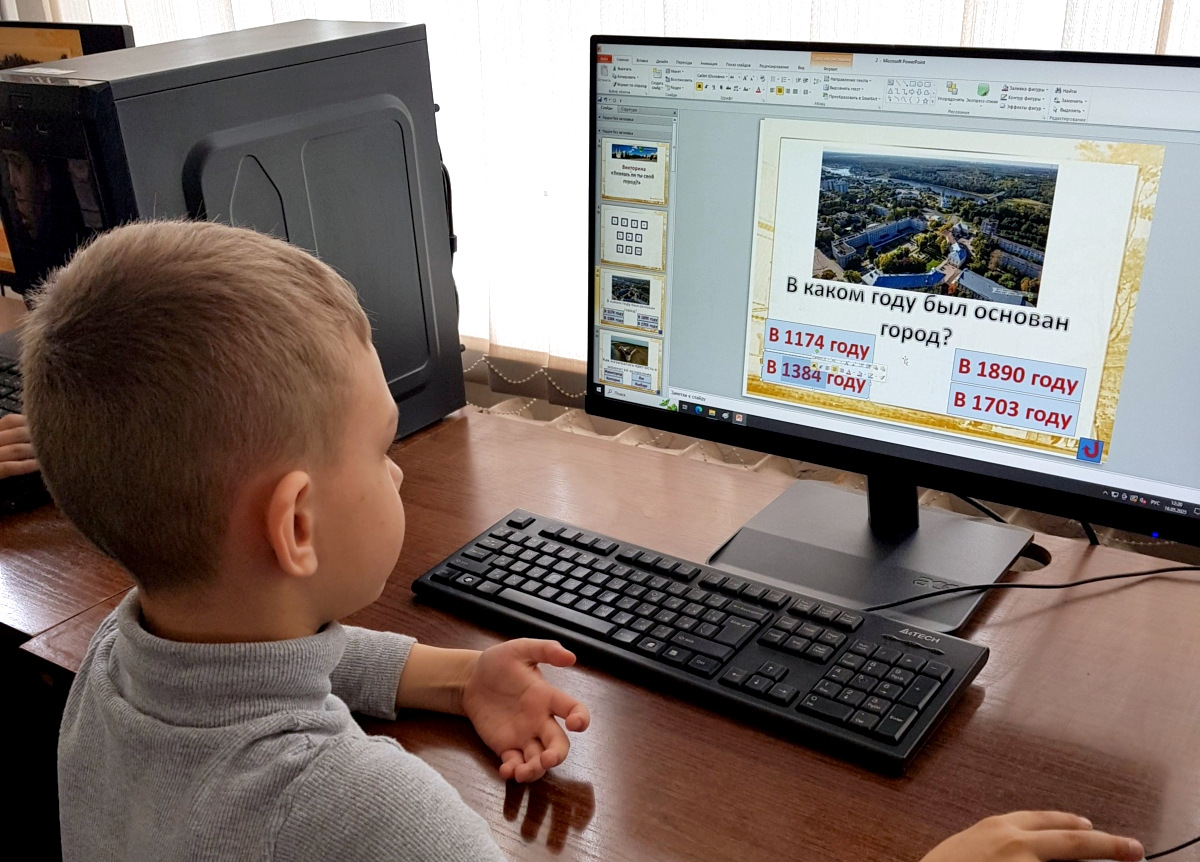 На занятиях педагог Ворновских Ю.А. предложила учащимся создать презентацию на тему: «Знаешь ли ты свой город?» для внеурочных событий в начальных классах. Во время работы с материалом ребята открыли для себя новые факты истории своего родного города. А младшие с интересом знакомились с новой для них программой и, отвечая на вопросы викторины, изучали памятные места города.