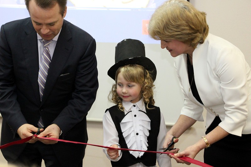 На торжественной церемонии была перерезана красная ленточка, как символ открытия центра, выступили воспитанники детского сада № 19 и воспитанники кружка журналистики ЦИТ учащиеся Кингисеппской гимназии.