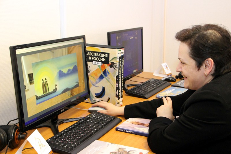 К каждому компьютеру подключены наушники, надев которые та как бы остаешься наедине с шедеврами искусства и можешь самостоятельно и не спеша бродить по залам музея, рассматривая картины, интерьеры, скульптуры, в том числе в трехмерном изображении.
