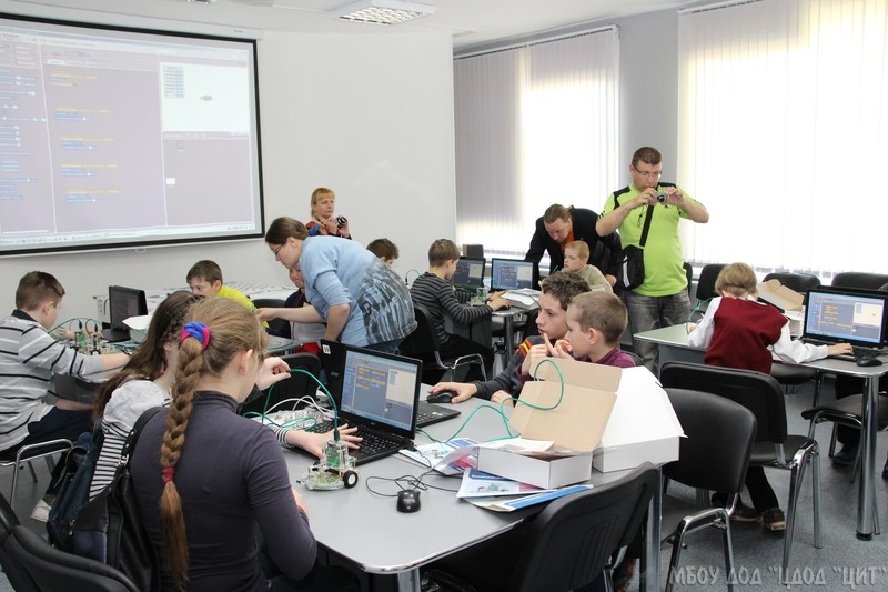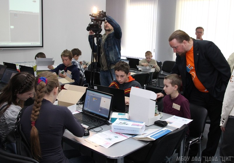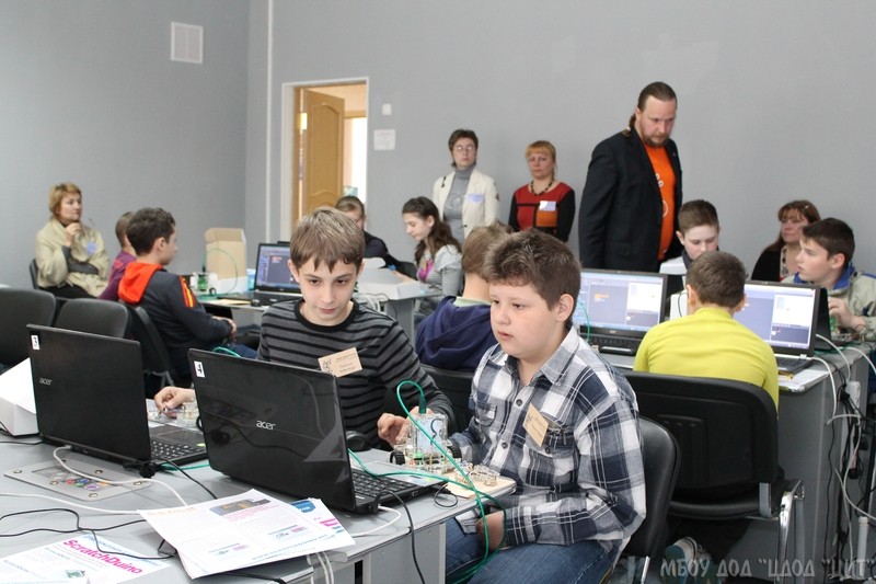 Робототехника на платформе ScratchDuino: мастер класс проводят сотрудники ЗАО «Тырнет», авторы проекта по созданию свободной электроники ScratchDuino. 20 мая 2015 г.