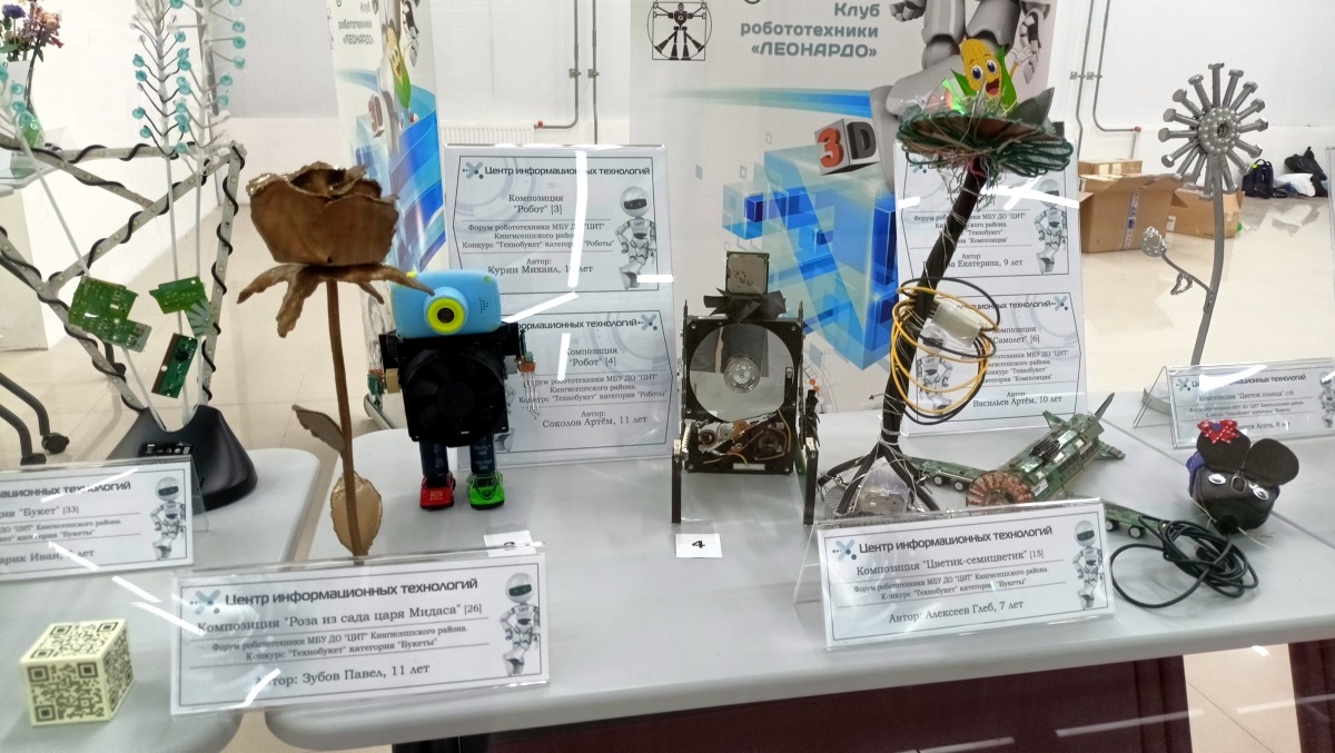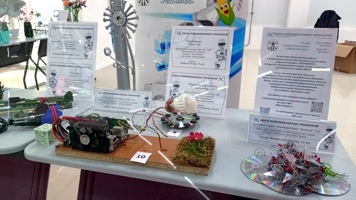 На выставке представлены конкурсные работы с наибольшим количеством баллов по оценке жюри открытого конкурса «Технобукет» и модели из призового фонда X открытого Форума робототехники «Старт в будущее», организованного МБУ ДО «ЦИТ» в ноябре 2024 года, и личных коллекций воспитанников и сотрудников ЦИТ.
