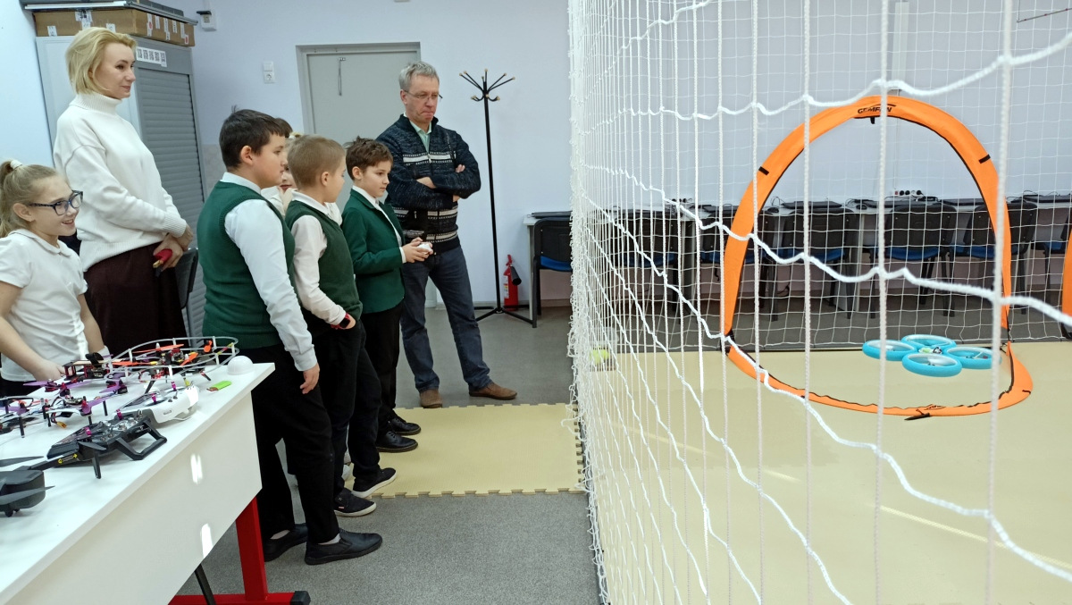 Гостям показали учебные локации ЦИТ: кабинет клуба робототехники «Леонардо» и в полетной зоне объединения «Аэро-Кинг». Рассказали о занятиях техническим творчеством, поговорили о возможностях беспилотников, дали чуть-чуть попробовать себя в роли оператора БПЛА.