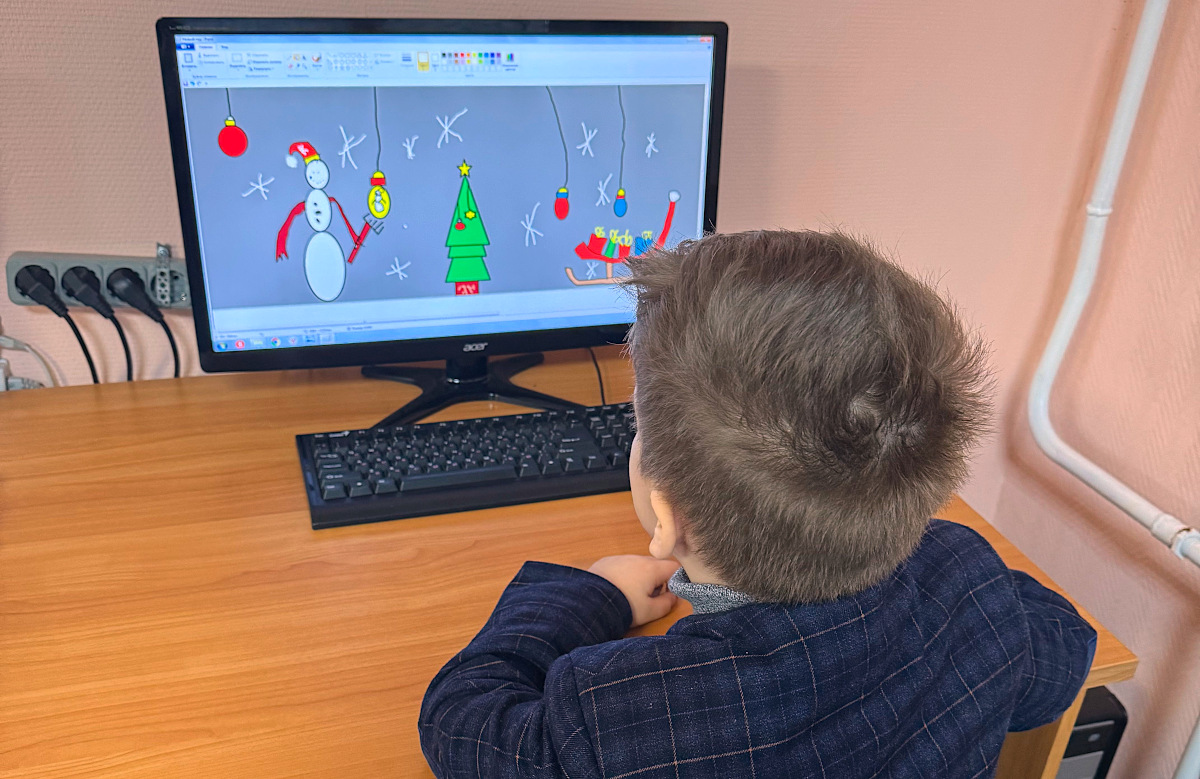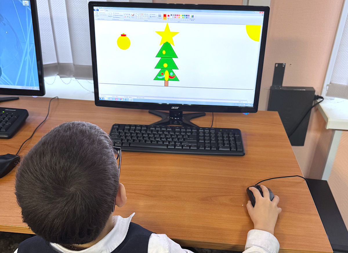 На занятиях «Компьютерный практикум» и «Компьютерная графика и анимация» ребята рисуют новогодние открытки, но не с помощью привычных карандашей и кисточек, а виртуальных.